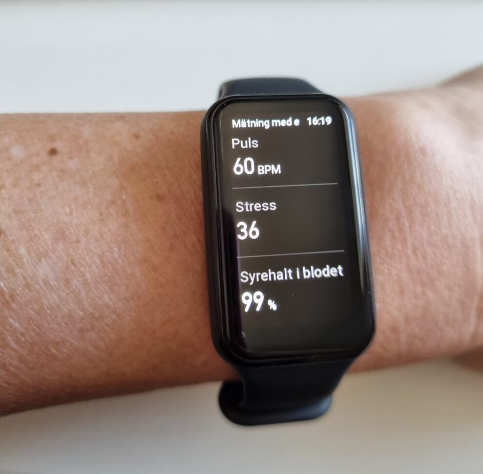 Armbandet kan även ge mig upplysning om puls, syrehalten i blodet och stress.