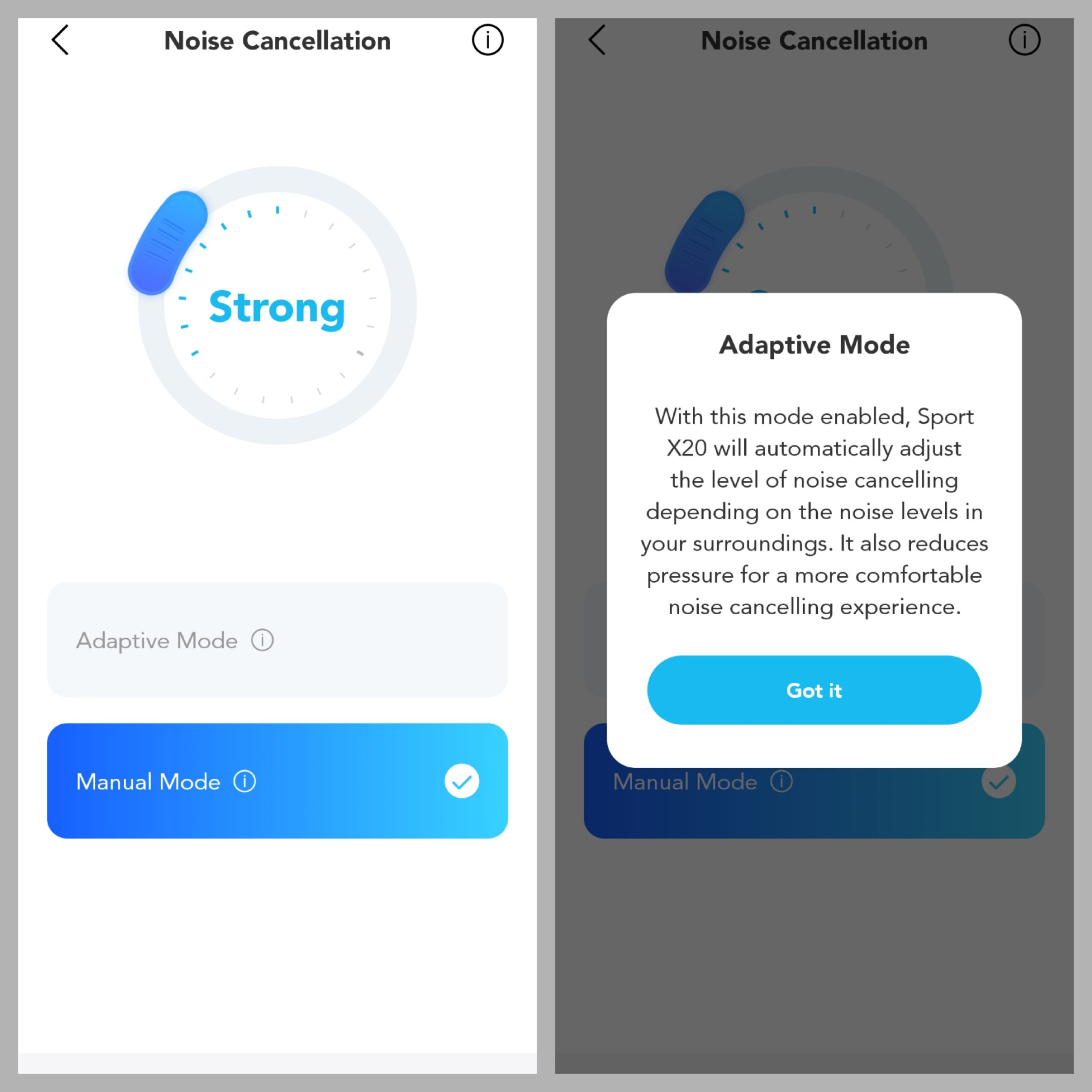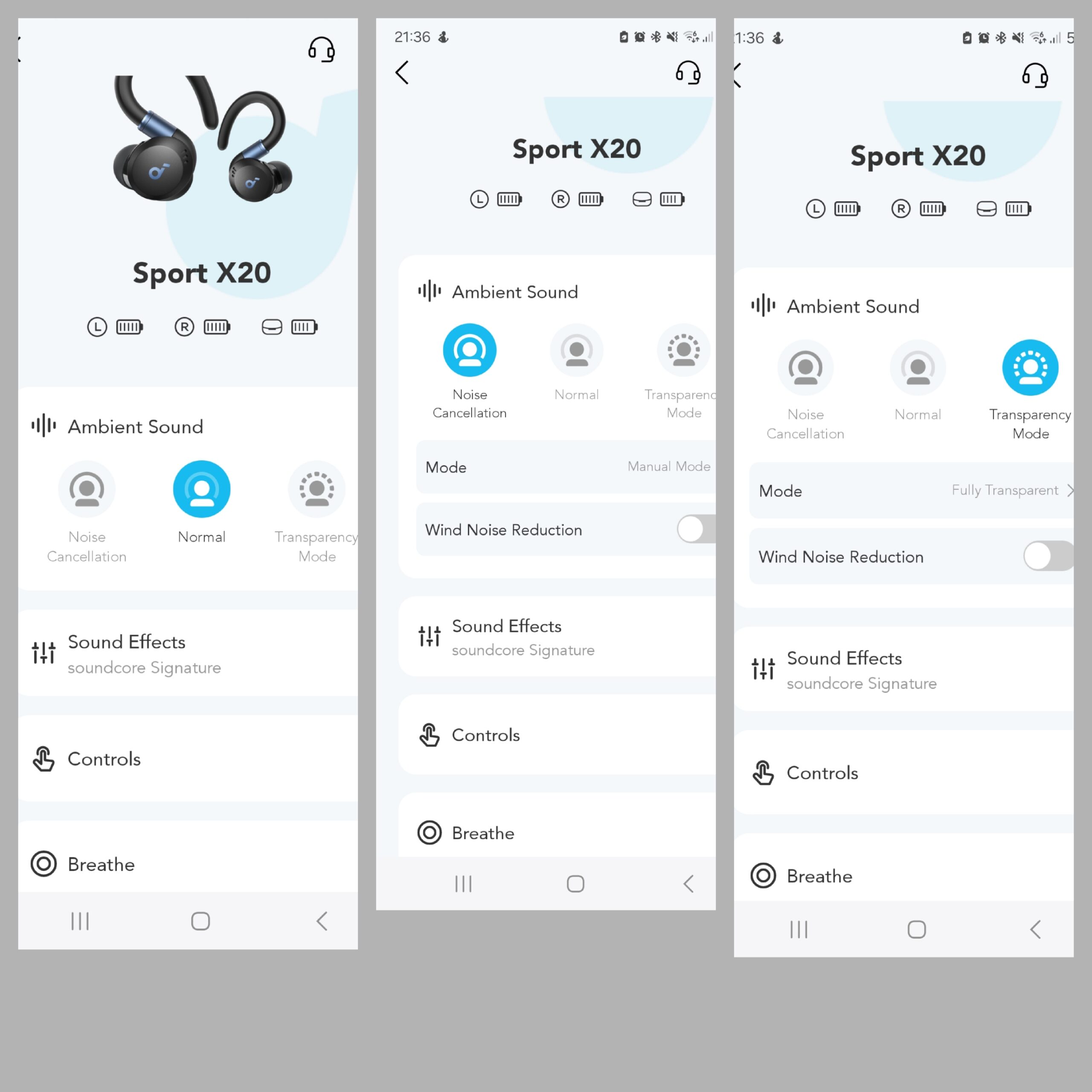 Jag har inte så väldigt mycket att säga om brusreduceringen på Anker Soundcore Sport X20. Den är varken bra eller dålig utan ganska medioker. Vid trafikerad väg klara den av att stänga ute en hel del av bruset men inte allt. Det finns tre olika ANC-lägen men av någon anledning går det bara att skifta mellan två av dessa från öronproppen. Vill jag ha läget normal behöver jag gå in och ändra i appen. Högst oklart varför.