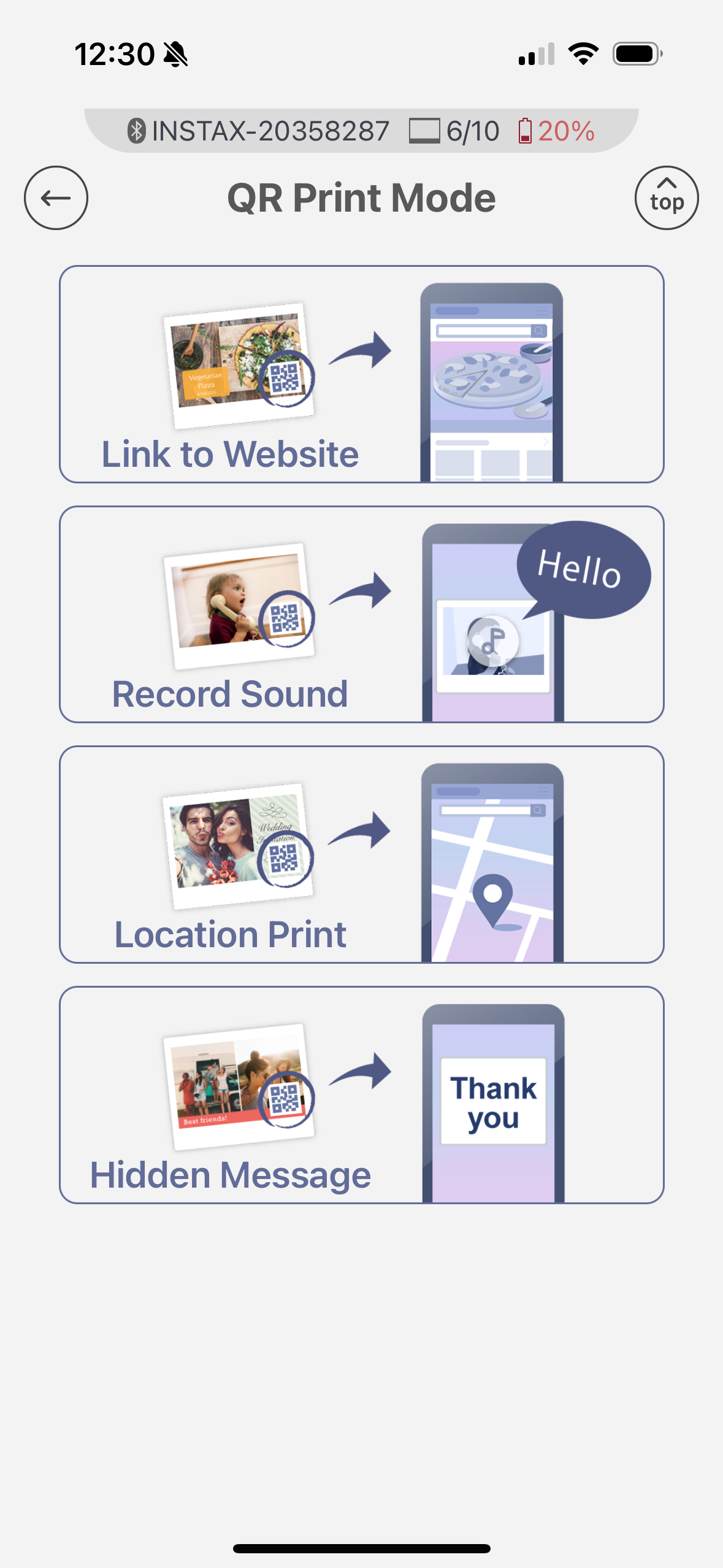 Det går också att lägga till en QR-kod, som skrivs ut valfritt hörn av bilden. Koden kan innehålla en länk till platsen där bilden togs, en ljudfil eller ett meddelande, till exempel en gratulation till den som firas. Mottagaren skannar bara koden för att öppna ljudfilen eller innehållet som är dolt i QR-mönstret.