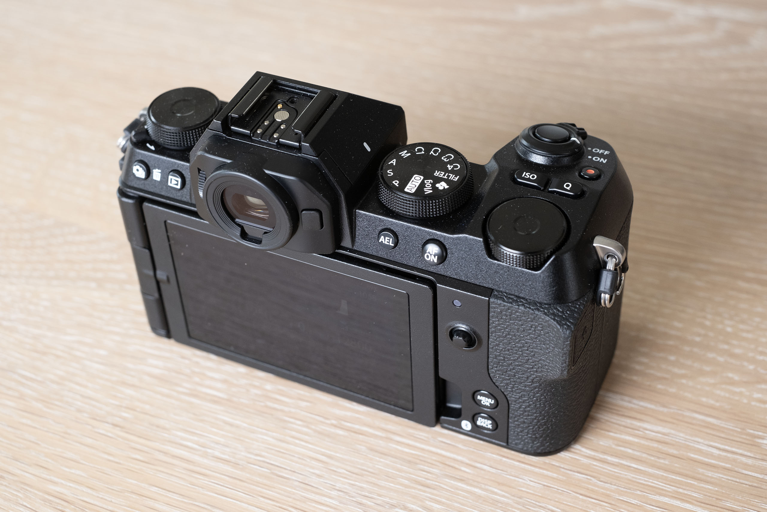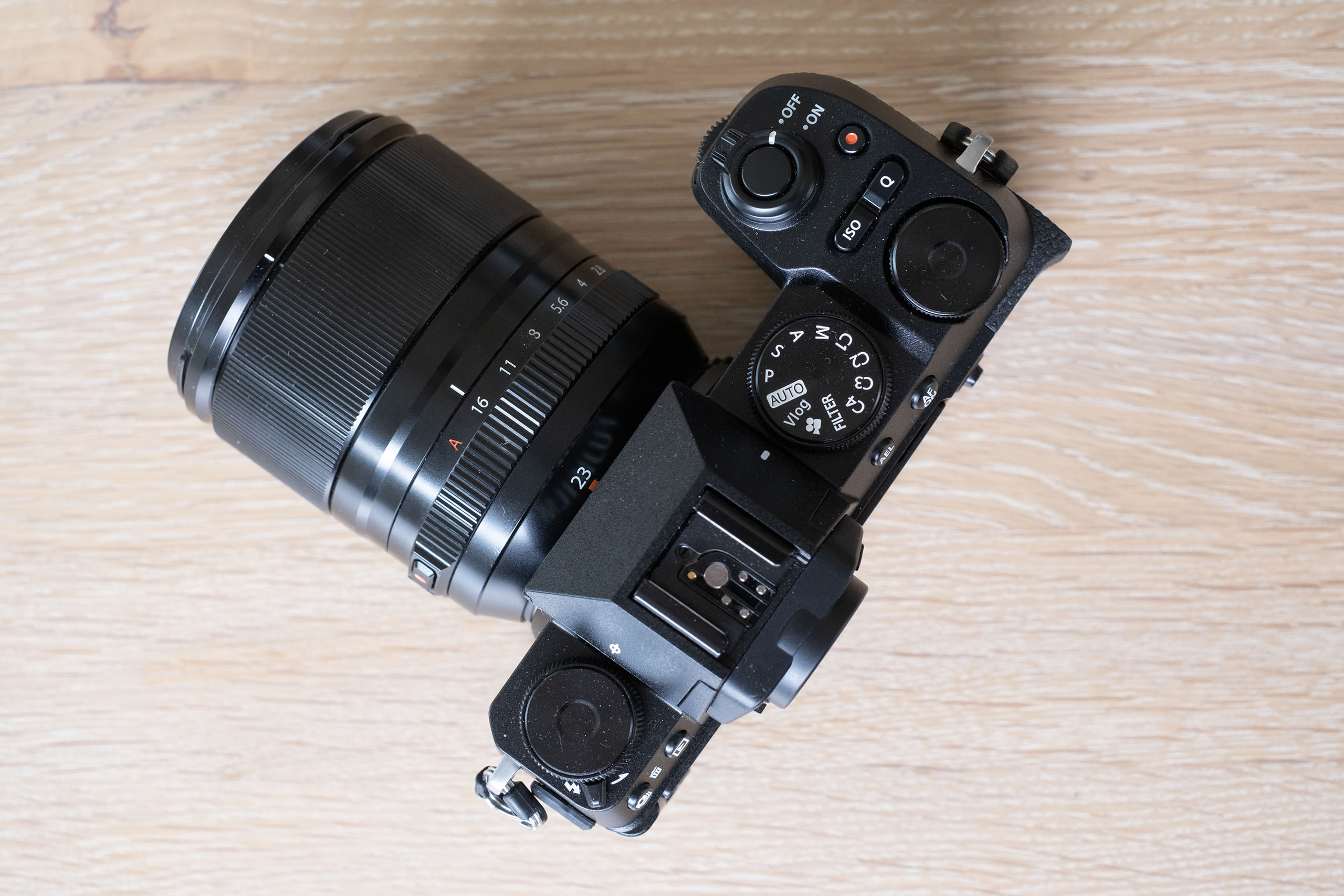 Handgreppet på X-S20 är mindre än på en X-T5, och mycket mindre än på en X-H2S, och kamerahuset är på det hela taget mycket kompakt. Det har gjort några av knapparna, särskilt på baksidan, ganska små. Men trots blygsamma mått och låg vikt har kameran anslutningar för USB-C, HDMI, mikrofon, hörlurar och fjärrkontroll. Den har dock bara en SD-kortplats, så de som satsar på många videoinspelningar i högsta kvalitet bör överväga ett SDXC-kort med UHS-II och många GB.
