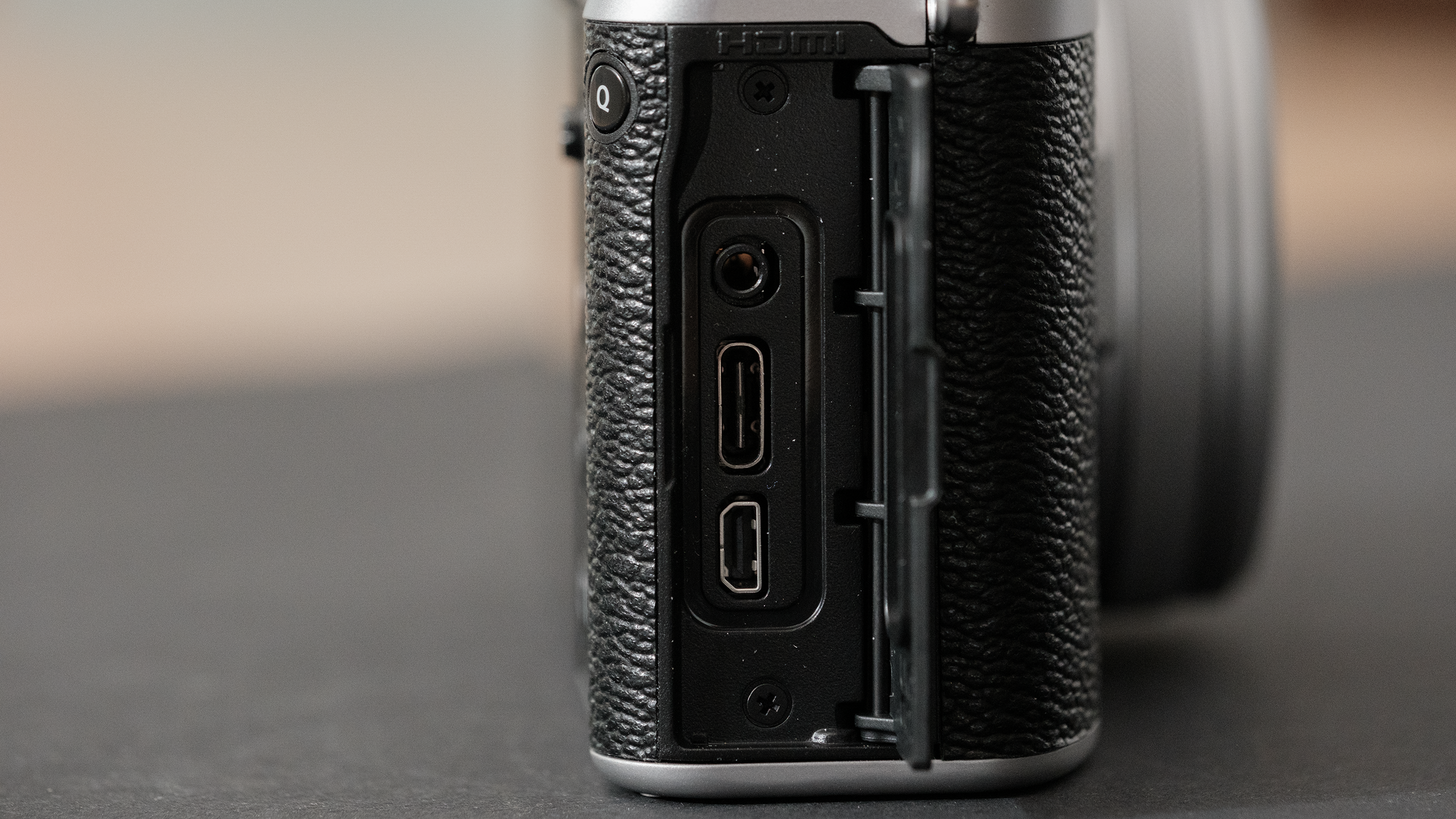 Utlösaren kan fjärrtriggas med trådutlösare eller med trådbunden fjärrkontroll – eller Fujifilms nya X-app, som direkt efter lanseringen uppdaterades med stöd för X100VI. Video kan skickas ut via en mikro HDMI-utgång och kameran kan laddas via USB-C-kontakten. Som här är uppdaterad till USB 3.2 och stöder bildöverföring upp till 10 GB/s.