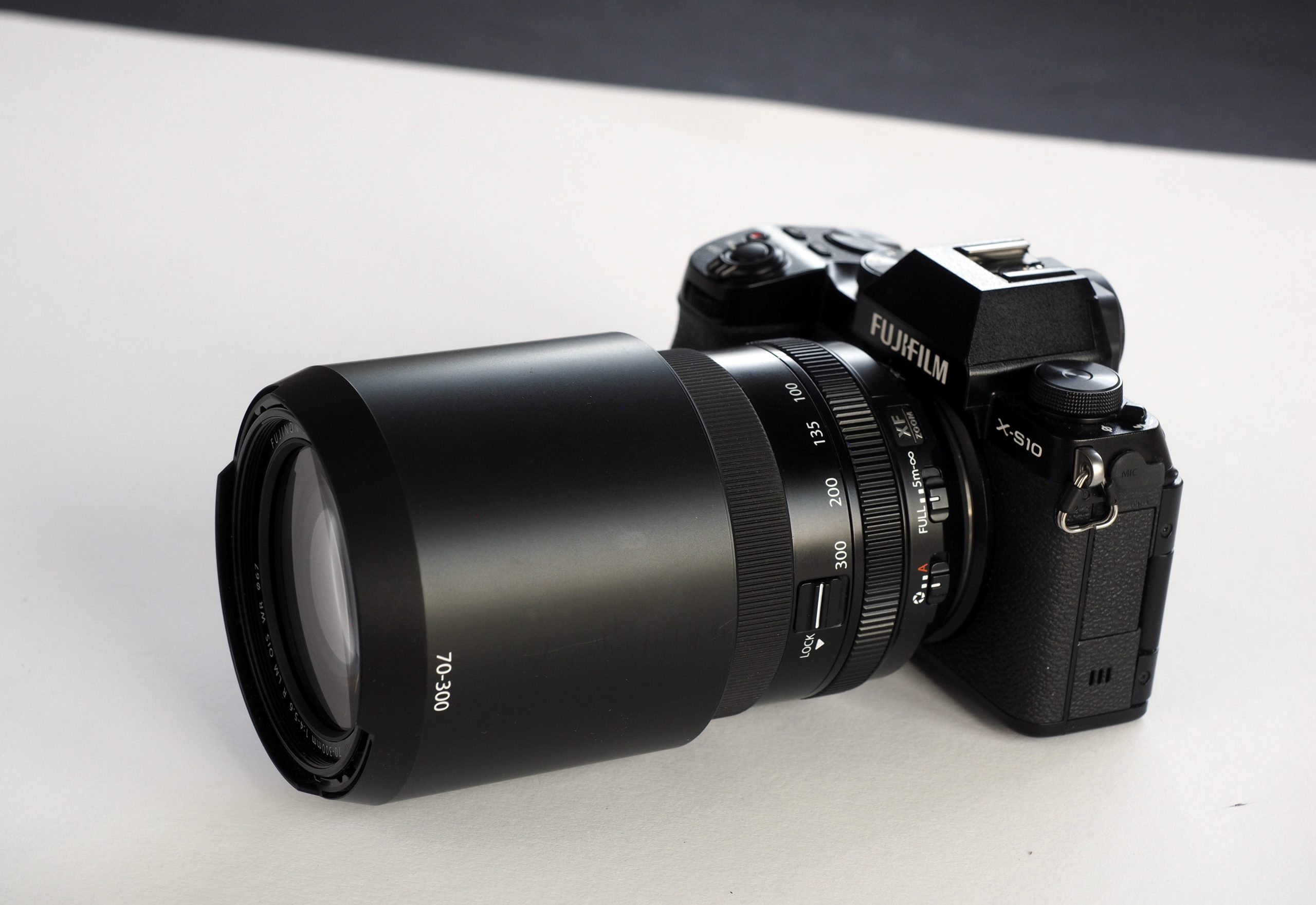 Den låga vikten gör att den balanserar fint på Fujifilms lilla X-S10 och konstruktionen verkar pålitligt stabil, fast kanske inte riktigt på samma nivå som XF 50-140 eller 100-400. En knapp låser zoomringen till 70 mm så att inte optiken drar ut sig hela vägen till 300 mm när man bär kameran i axelremmen.