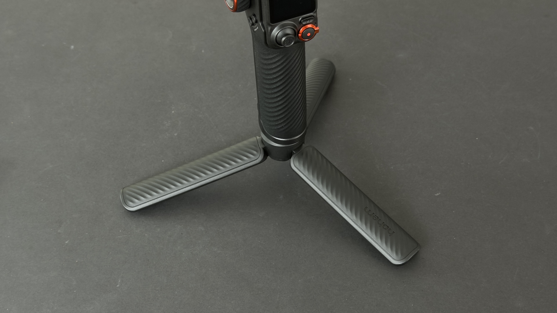Gimbalen är större och tyngre än DJI:s Osmo 8 och har en 193 mm inbyggd teleskopstång i handtaget. Det ingår ett avtagbart bordsstativ med tre ben.