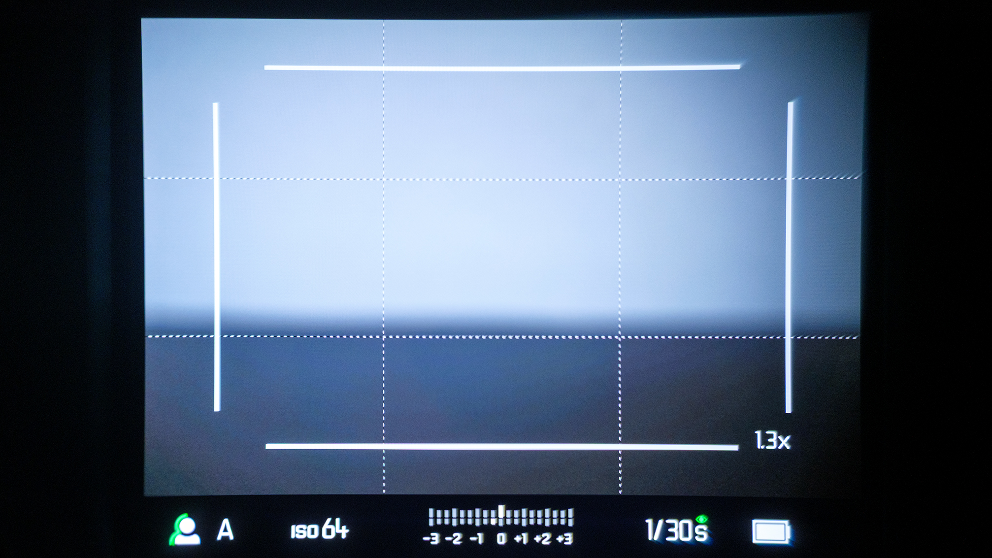Med spaken på kamerans framsida kan man göra en digital beskärning med en faktor på 1,3 eller 1,8, då visas utsnittets ramar i sökaren. Med en 35 mm Summilux-M på kameran får man 45 respektive 63 mm brännvidd, men observera att upplösningen (med JPEG) sjunker till 18 Mp när man har 1,8x beskärning.