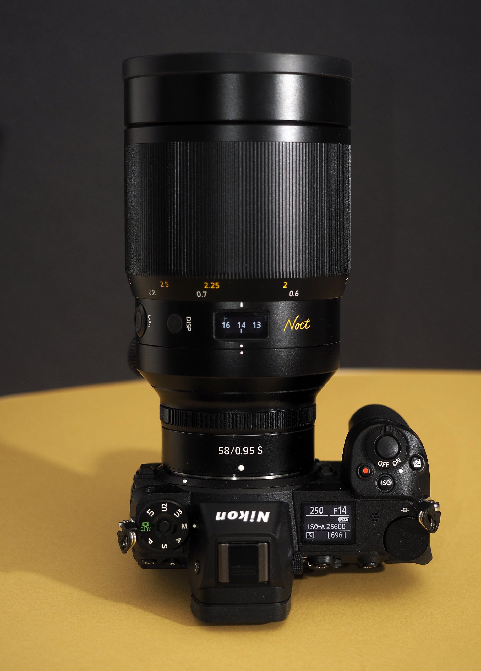 Nikkor Z 58mm f0,95 S Noct, som Nikon kallar det, är ganska så stort för att vara ett normalobjektiv. Det beror på en avancerad konstruktion med väldigt mycket glas. Det krävs för att korrigera optiska prestanda, eftersom objektivet har så extrem ljusstyrka.
