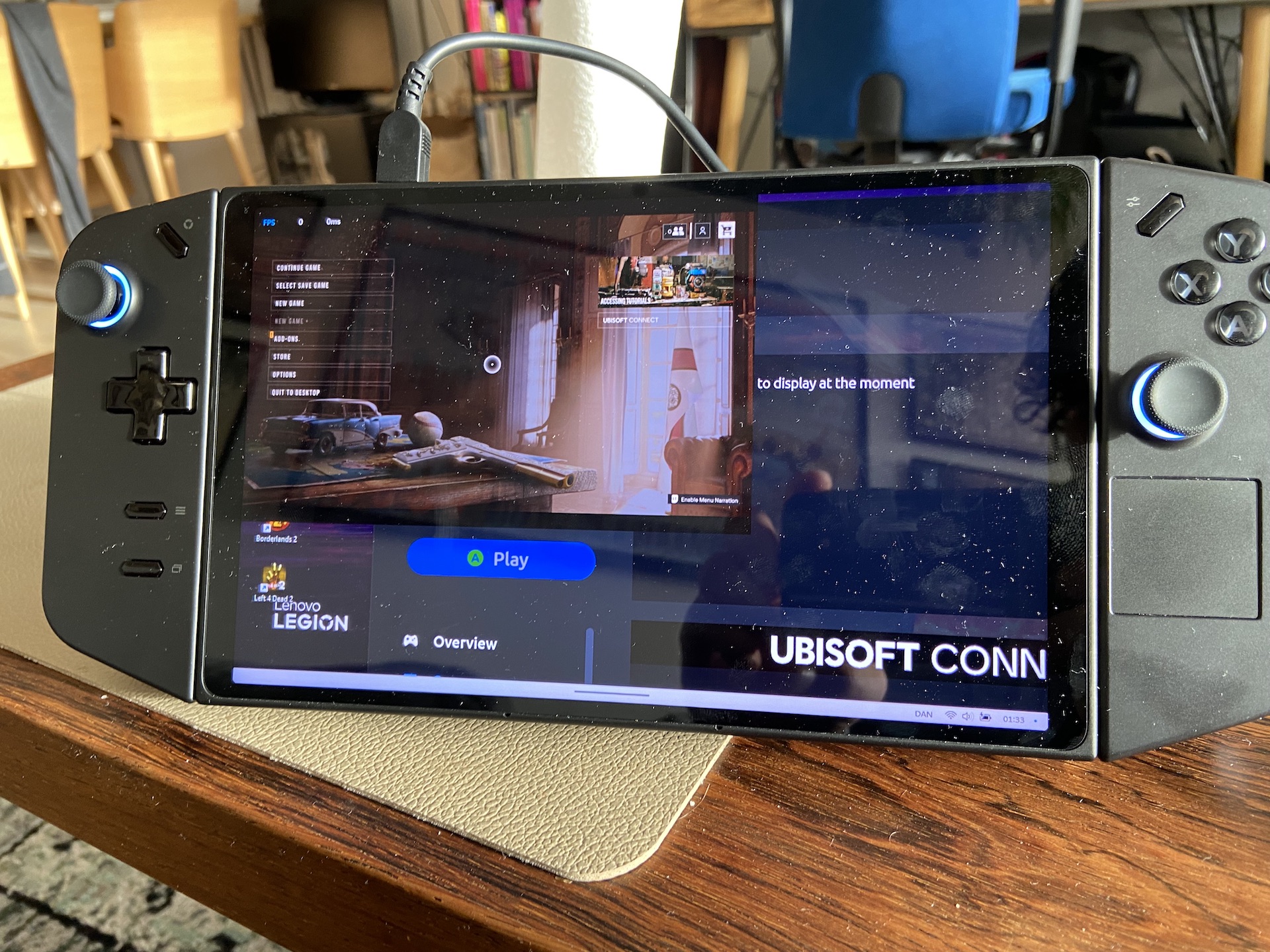 Om man vill få ut det mesta av sin Legion Go ska man naturligtvis ha skärmen inställd på den maximala upplösningen på 2 560 x 1 600. Detta kräver en hel del av den lilla datorn och fungerar bäst med äldre spel som inte är lika krävande. Borderlands 2 körs fantastiskt på mellan 40–50 FPS med skärmen och grafiken på högsta inställningen, men Far Cry 6 klarar bara 17–18 FPS om allt ska vara så imponerande som möjligt. Det är tyvärr inte tillräckligt för att njuta av spelet! Man måste inse att den imponerande skärmen måste sparas för spel som är några år gamla eller inte lika grafiskt intensiva. Detta är naturligtvis synd, eftersom äldre spel vanligtvis är mindre grafiskt imponerande.