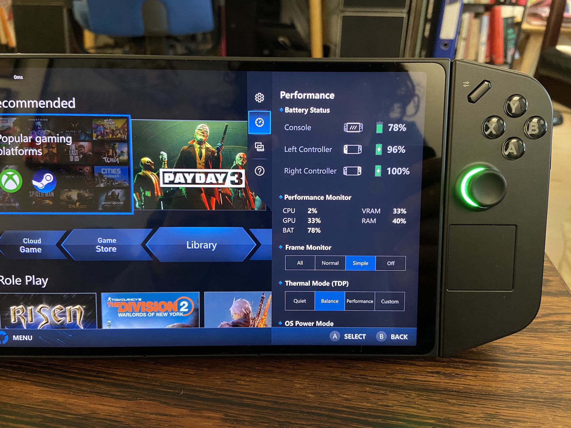 Det finns några hjälpappar som gör livet med en handhållen dator lite enklare, men du måste installera dem själv. Sedan har du genvägsknappar på kontrollerna som öppnar Legion Space, som håller reda på dina spel, och Quick Settings, där du kan ändra prestanda- och anslutningsinställningar.