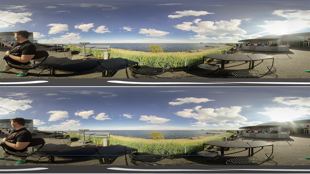 När det sedan är dags att titta på inspelningarna så måste man ha en PC. Det finns ingen programvara till Mac ännu, trots att det finns en app till iPhone. Inspelningarna stoppas in i HumanEyes VR Studio, där de kan redigeras en smula och renderas till mer användbara 360-filmer. De åtta bilderna från de åtta linserna sätts ihop till en sfärisk film. Det tar sin lilla tid.