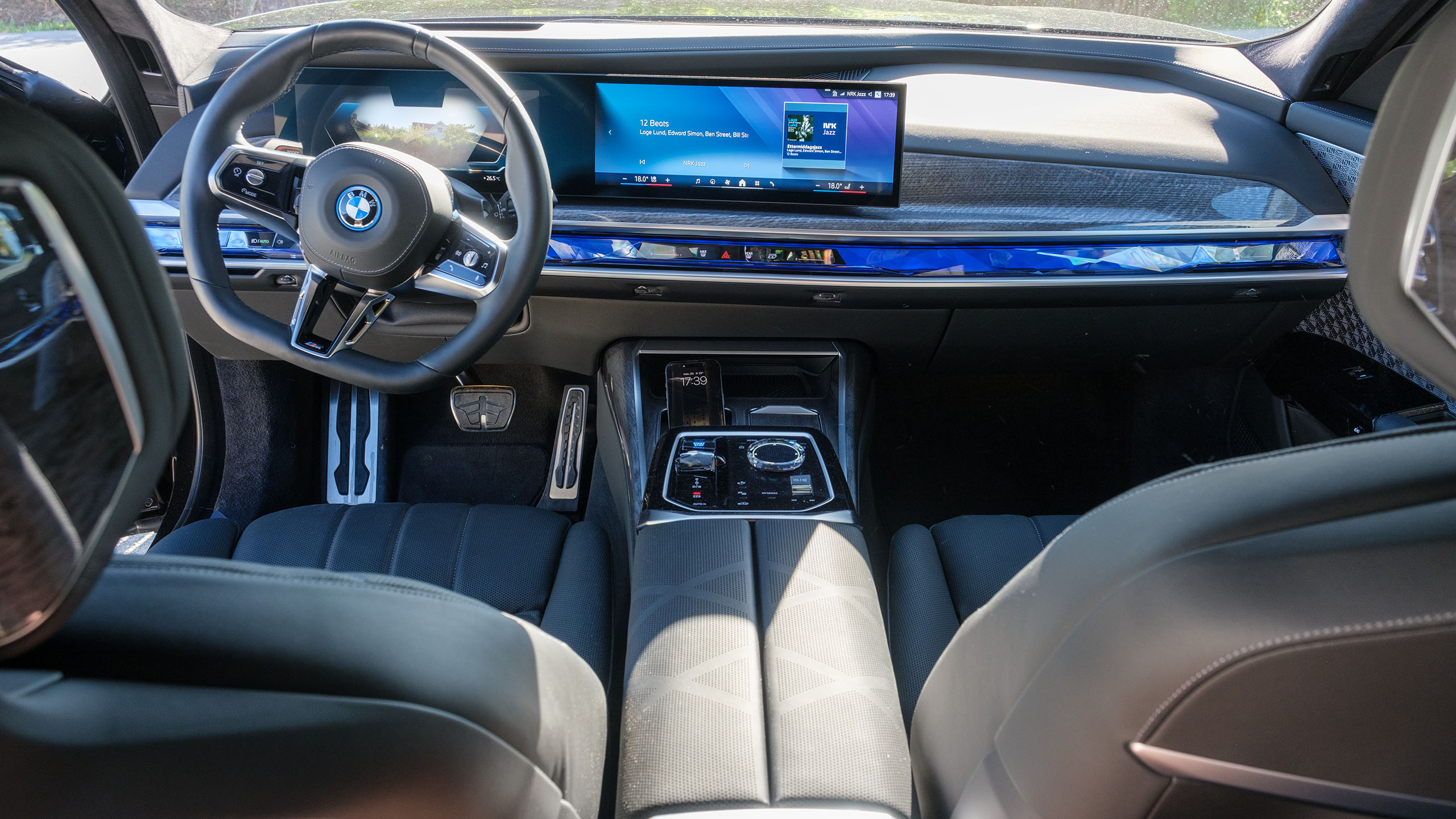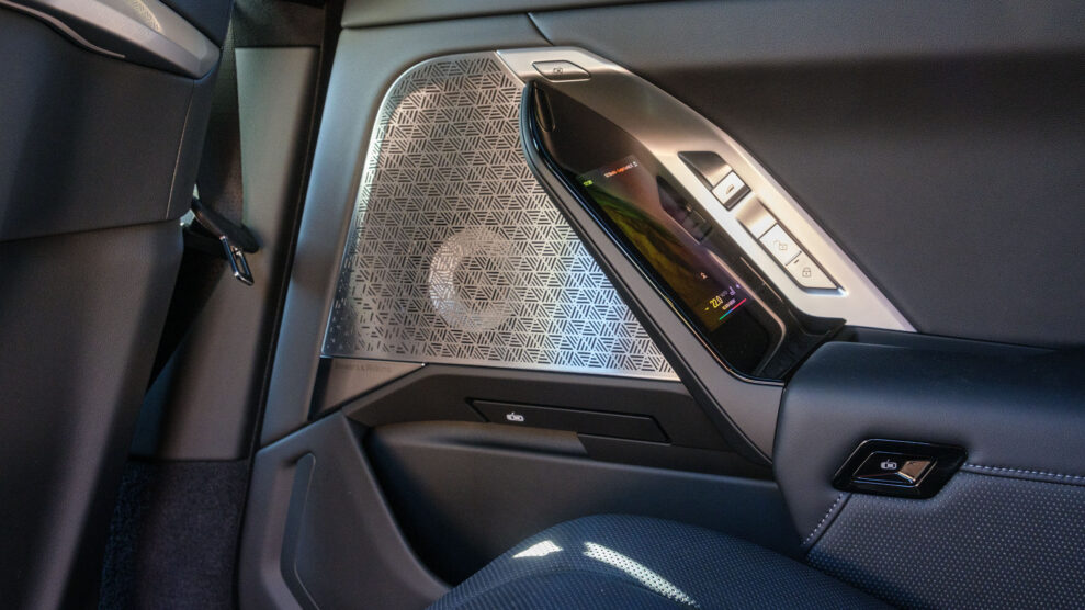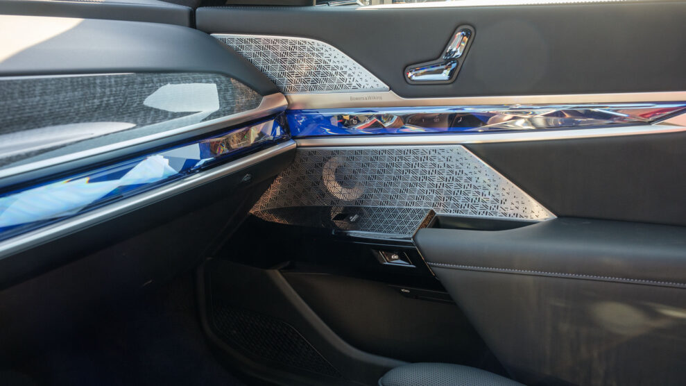 Den stora skärmen och B&W-systemet finns även i bensinversionen av 7-modellen, men vår testbil var den elektriska i7 xDrive60. Som levereras med ett 101,7 kWh-batteri och en teoretisk räckvidd på 625 km. Med hjälp av elmotorer med sammanlagt 544 hk och 745 Nm i vridmoment gör bilen noll till hundra på 4,7 sekunder, i nästan total tystnad. Perfekta förutsättningar för ett riktigt bra ljudsystem, alltså.
