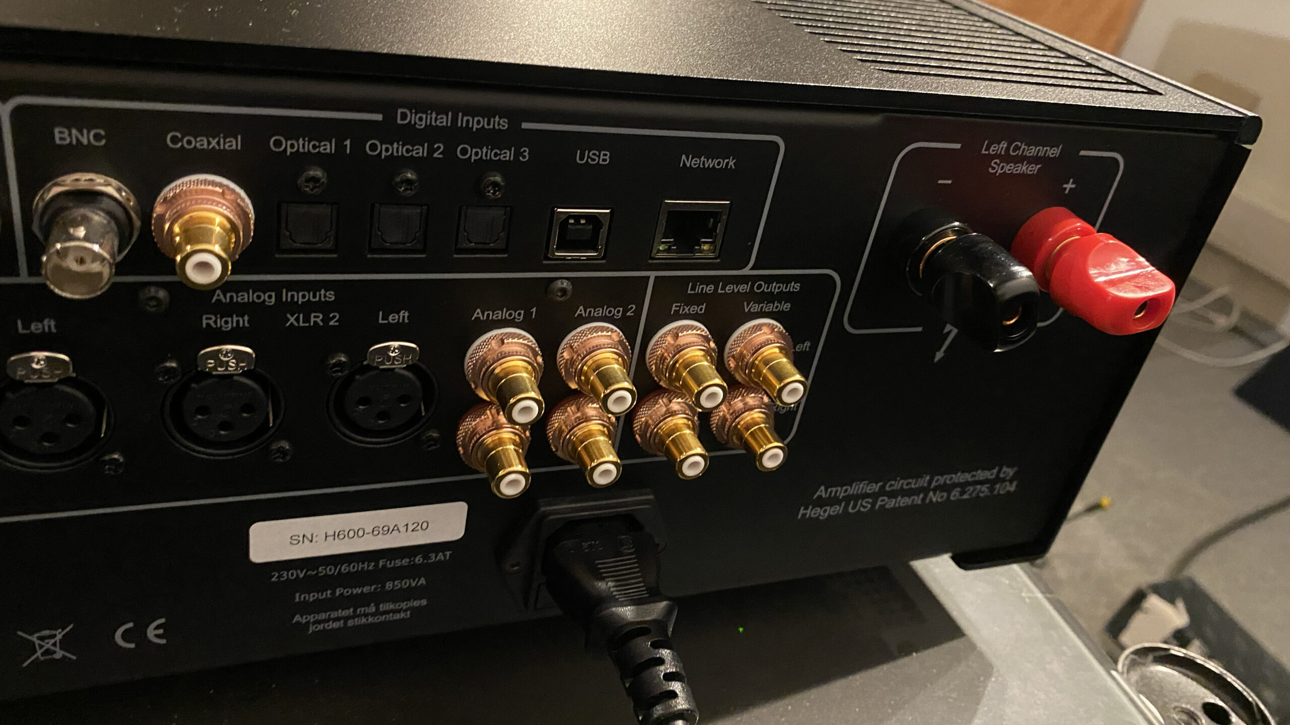 Hegel har valt att inte utrusta H600 med en HDMI-ingång. Vi hade väldigt gärna haft en sådan, som kunde kopplas till TV:n via ARC/eARC. Då hade man också kunnat styra ljudet direkt från TV:ns fjärrkontroll. Som tur är kan förstärkaren programmeras så att den reagerar på vanliga TV-fjärrkontroller. Om din TV-fjärr stöder Bluetooth är det viktigt att inaktivera detta, annars fungerar den inte med Hegel.
