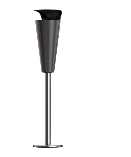 Cone 65 har en design som är ännu ovanligare än tekniken: en halv meter hög kon som antingen kan ställas på en möbel eller på ett speciellt golvstativ i polerat stål som lyfter upp högtalaren i öronhöjd. Guldmetallic-versionen, som vi testade, glider garanterat inte in diskret i någon inredning alls. Den är däremot ett säkert kort som samtalsämne i ett hem med designintresse