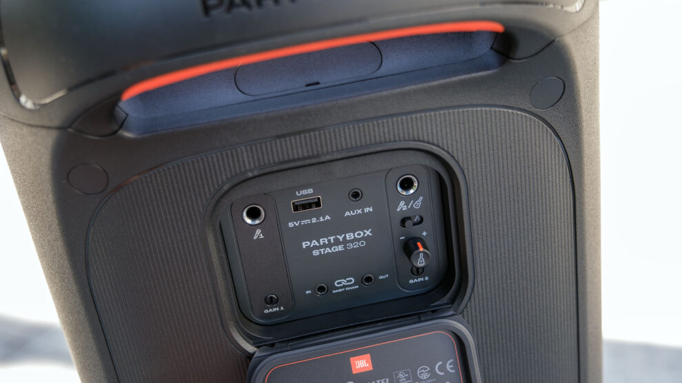 PartyBox Stage 320 är inte bara fysiskt större än Club 120, den spelar också högre och mycket tuffare. Skulle kanske bara fattas annat, eftersom den trots allt har två större baselement i ett större kabinett och hela 240 watt effekt till förfogande. Några extra knappar ovanpå det stänksäkra kabinettet finns också, och ingångar för mikrofon eller gitarr med justering av klang, bas, diskant och volym.