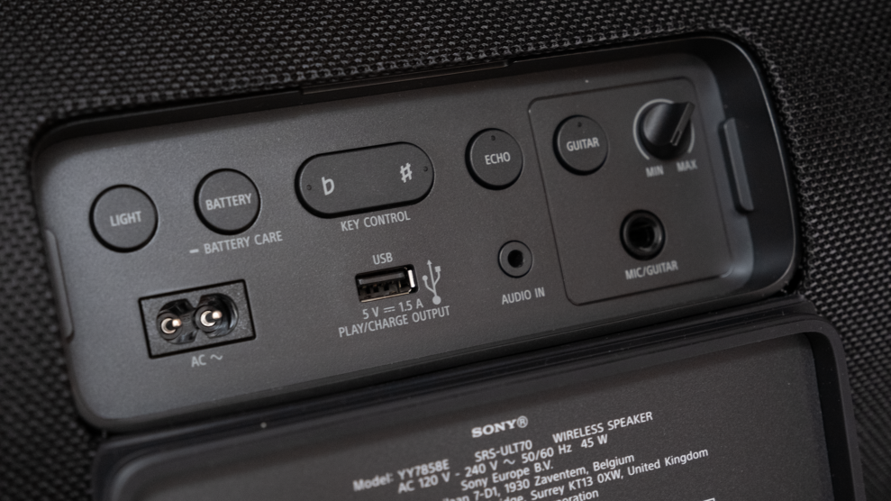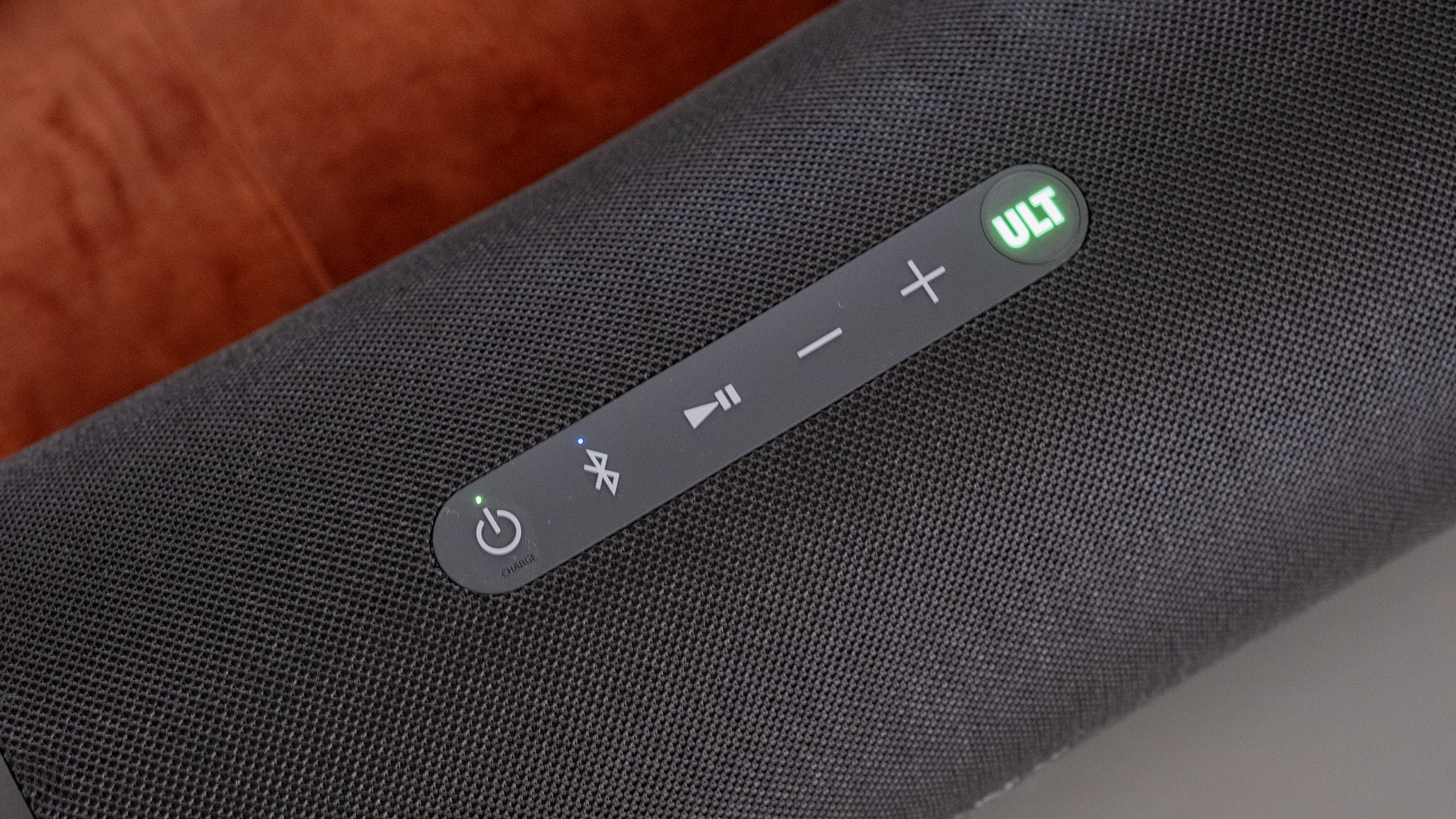 Högtalaren i Sonys Ultimate-serie har en ULT-knapp på ovansidan som aktiverar två olika EQ-inställningar i basen. ULT 1 ger djupare bas medan ULT 2 dämpar djupbasen till förmån för mer tryck.