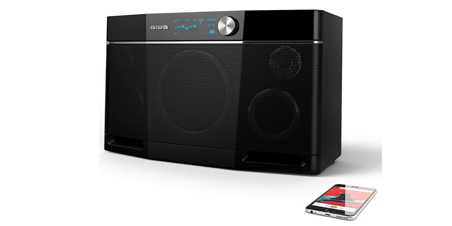 Sedan finns Aiwa Exos-9. En stor högtalare som bara är bärbar eftersom den har ett handtag på baksidan. På framsidan sitter ett stort 6,5-tums baselement samt två mellanregister och diskanter som spelar i stereo. Den svarta lådan är inte vacker att titta på och känns som ett besök från 1990-talet.
