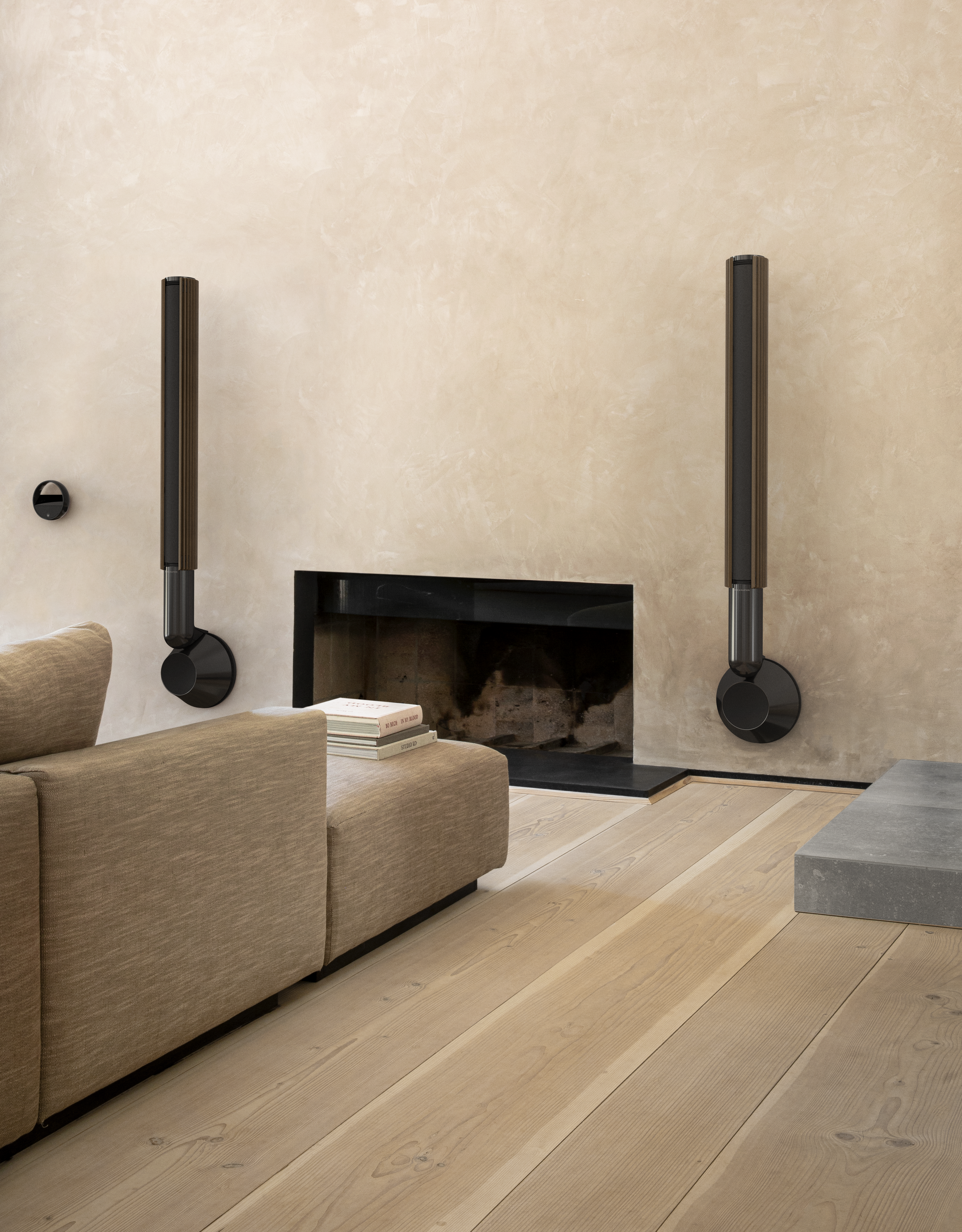 De kan ställas på golvet eller hängas på väggen. I det senare fallet måste det vinklade fästet på baksidan bytas ut mot ett annat som gör det möjligt att vrida subwoofern – som även är sockeln – 90 grader. Högtalarna finns i tre olika färger, med vertikala träribbor tillverkade av Bjerrum och Nielsen i Danmark. Ribborna finns i tre olika ekvarianter och valnöt, och kan enkelt bytas ut.