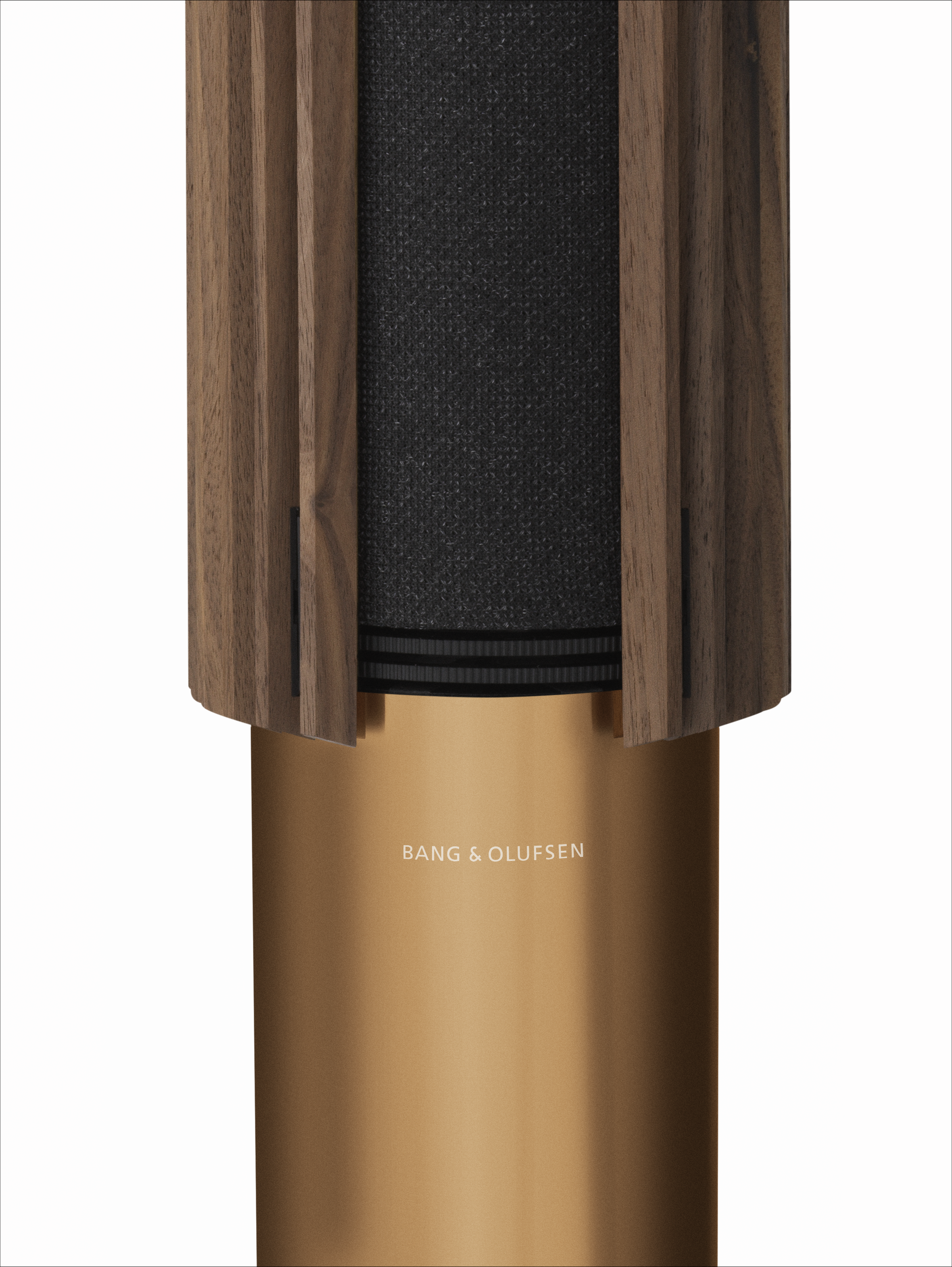 Trädelen sitter fast på motorstyrda fästen, som sakta drar undan ribborna från högtalarens front när man sätter på dem – och lika sakta glider fram och täcker den grå fronten när man stänger av dem.