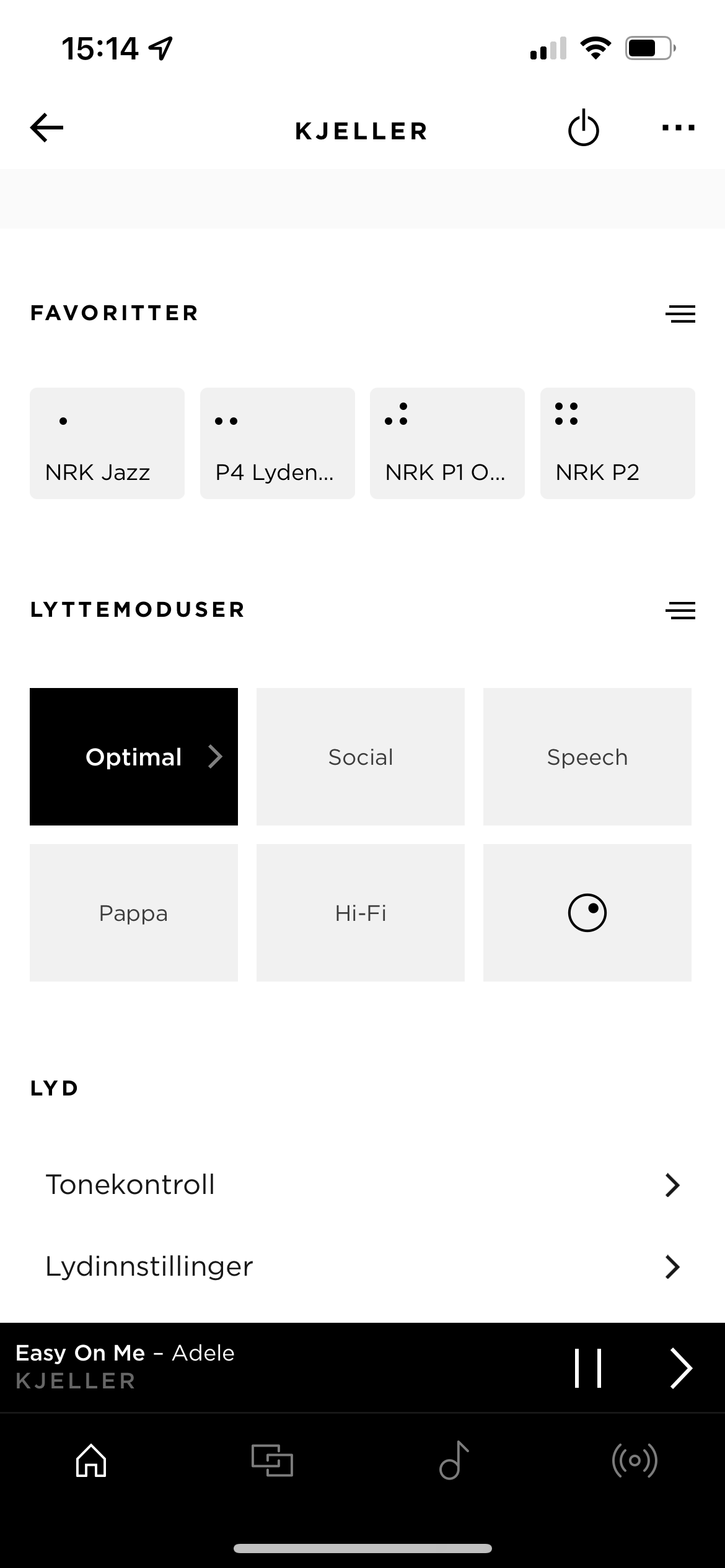 Den dagliga styrningen är en barnlek. Det finns fyra förinställningar som man kan bestämma själv, en tryckning startar till exempel favoritradiokanalen och om man trycker på play i Tidal- eller Spotify-appen tonar musiken in snyggt i stället för radiokanalen.