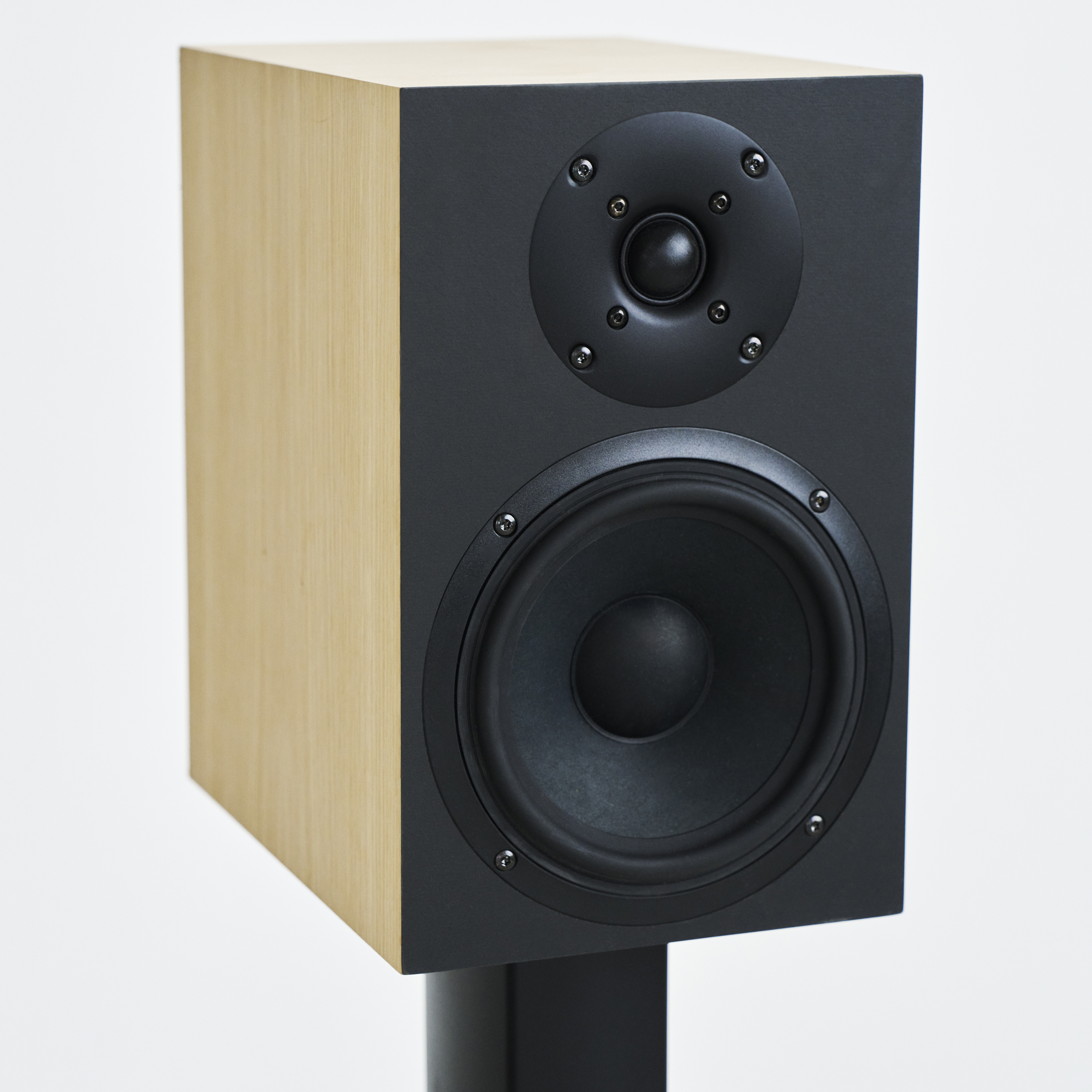 De två enheterna är monterade i ett kompakt basreflexkabinett på bara sju liter. Kabinettet är byggt i Danmark på den egna möbelfabriken och finns i flera utföranden, alla i äkta träfaner. Front- och bakplattan är klädd i linoleum.