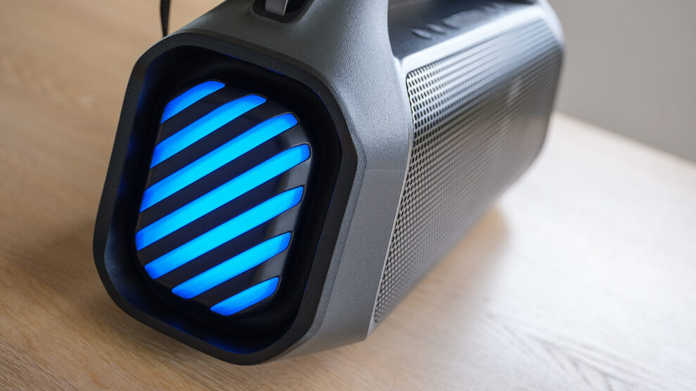 Testets avgjort största högtalare är förvånansvärt billig. Här får man riktigt mycket för pengarna. 20 timmars speltid låter kanske inte särskilt imponerande. Men med 100 watt nominell effekt och tre aktiva och två passiva element får man ut mycket ljud ur Soundcore Boom 2 Pro.