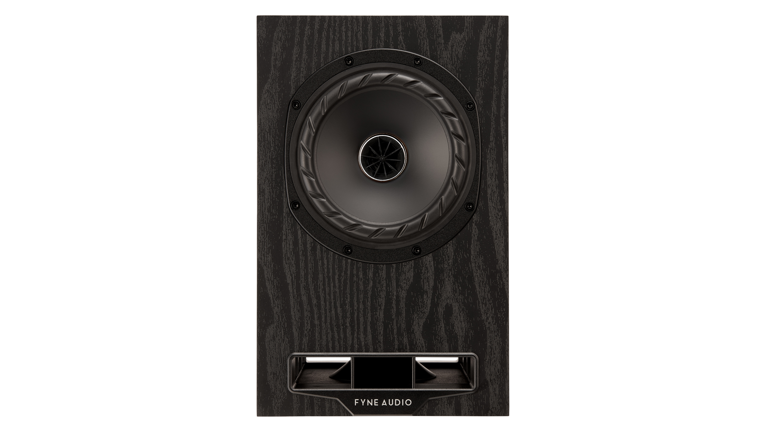 Det sitter bara ett synligt högtalarelement i Fyne Audio F5E, men eftersom det är ett koaxialelement så innehåller det mer än man ser vid första anblicken. I mitten av basen sitter en diskant med ett 19 mm titanmembran som spelar in i ett horn som är borrat i bashögtalarens polstycke och förlängs av baselementets membran.