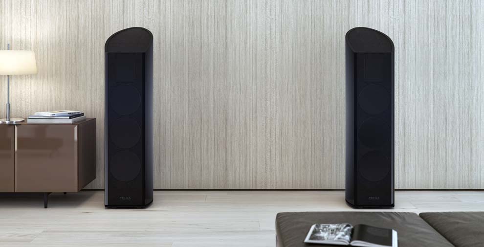 Jag vågar påstå att musik handlar mycket mer om tid än om frekvens. Om tonerna inte träffar precis när de ska så förstör det hela ljudbilden. Av just det skälet har Piegas finaste högtalare koaxialelement, där diskanten sitter i mitten av mellanregistret. Det ger en optimalt faskorrekt och sömlös övergång mellan dem, samtidigt som de två registren återges längs samma axel åt alla håll. Med resultatet att stereoperspektivet blir så bra som möjligt, även om man inte sitter mittemellan högtalarna när man lyssnar. Och där andra tillverkare har dome-formade och konkava membran i deras koaxialelement så använder sig Piega av band till båda. Kraftfulla neodym-magneter sätter en 20 mikrometer tunn aluminiumfolie i rörelse. Fördelarna med bandmembran är att de reagerar snabbare än dome-formade och traditionella membran, och har dessutom en bredare spridning. Mellan ett traditionellt mellanregister och en banddiskant riskerar man en ojämn fasövergång, men detta har Piega löst genom att alltså använda bandelement till båda registren.