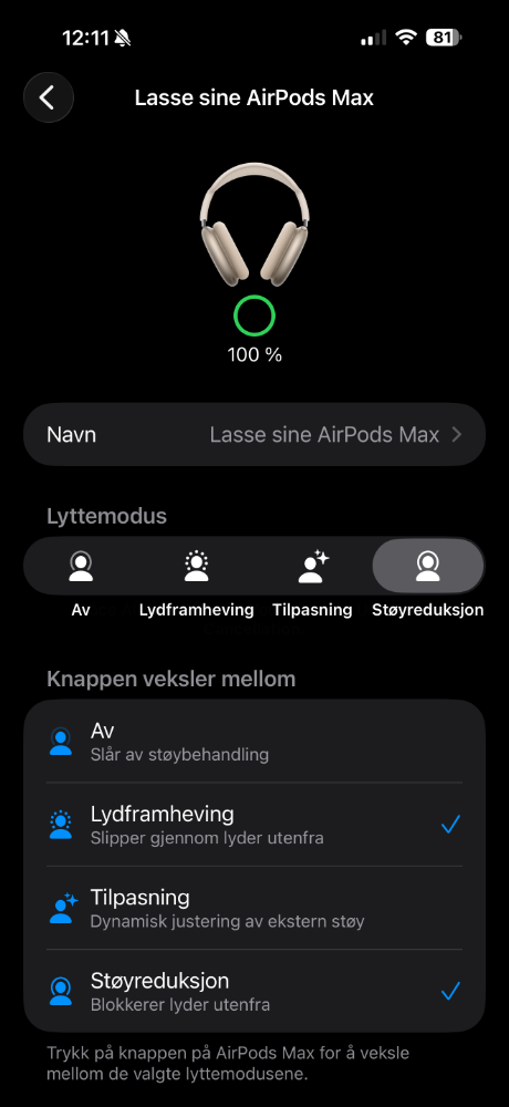 Mikrofonerna på öronkåporna reagerar lite trögt när man börjar prata, men de dämpar musiken och bruset och förstärker ljudet från samtalspartnern, precis som ett par AirPods Pro 3 gör. Jag tycker det är artigare att ta av sig hörlurarna helt när jag vill prata med någon. Då pausas musiken också, och startar igen när jag sätter på mig dem.