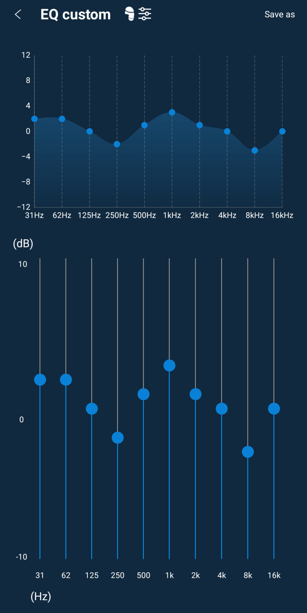 Jag gillar att Noble-appen är enkel och intuitiv, med få funktioner. EQ-inställningarna lagras direkt i öronpropparna och det går att lagra flera personliga EQ-kurvor. Jag måste däremot klaga på att appen inte låter mig redigera befintliga profiler. Varje gång jag gör ändringar måste de sparas i en ny profil. Krångligt.