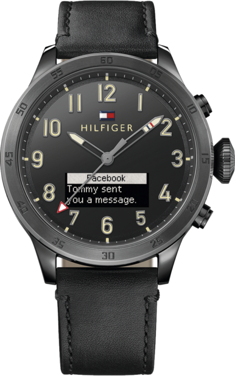 Klockan från Tommy Hilfiger har samma innanmäte och därför också samma programvara som konkurrenten från Hugo Boss. Klockan är tillverkad av Movado och utrustad med programvara från HP. Det sportiga utseendet är dock Hilfigers enda fördel, och området som klockan skiljer sig på. När den är parad med mobiltelefon kan du i en liten display i mitten se vem som ringer, hur många steg du tagit samt få påminnelser från kalendern, meddelanden och liknande.