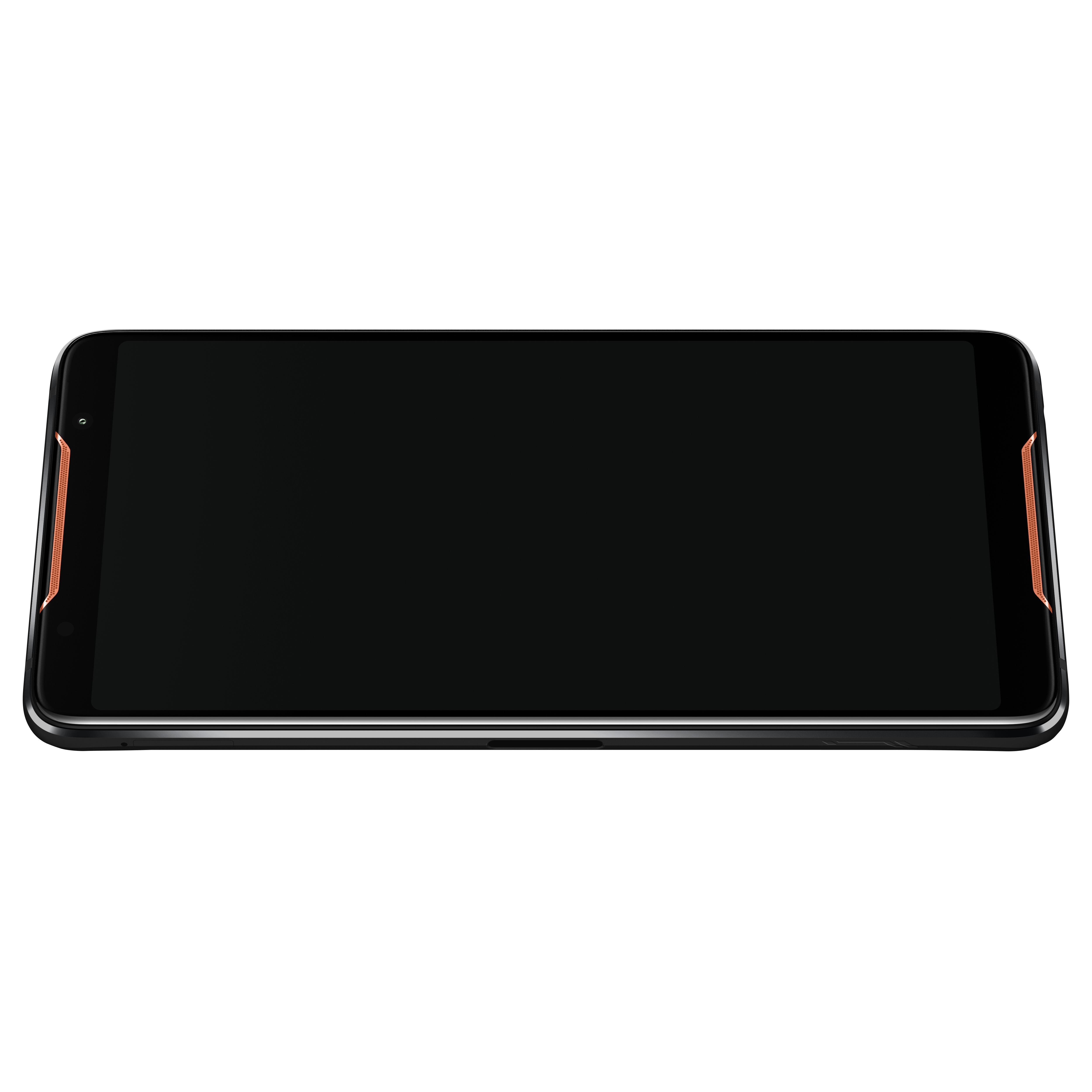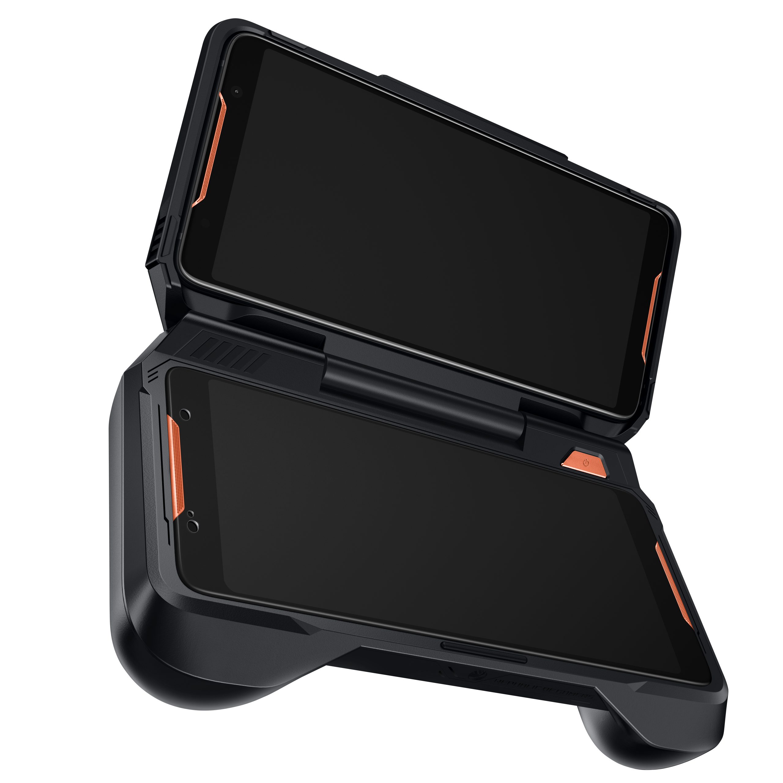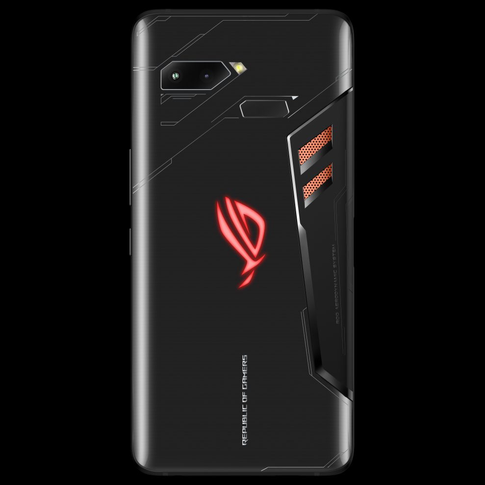Skärmen tar upp det mesta av framsidan. På den böjda glasbaksidan hittar man två kameror, fingeravtrycksläsare – och lufthål för kylning! Kamerorna är desamma som i den civila toppmodellen ZenFone 5Z. Förutom USB-C-port och hörlursuttag längst ned finns en expansionsport i mitten med en dubbel USB-C-port för inkoppling av extrautrustning. Och sådant finns det gott om.