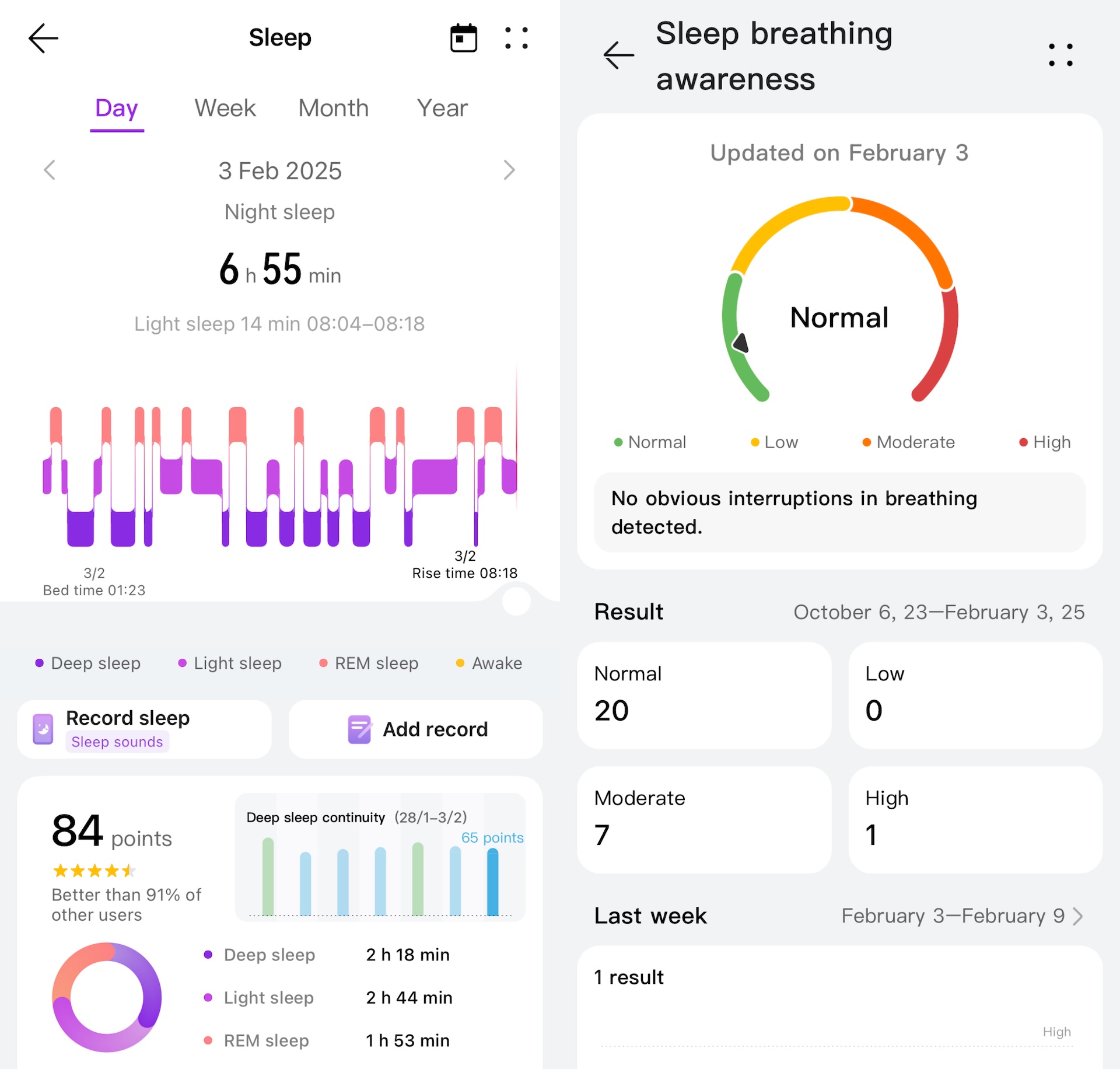Däremot har vi använt klockan flitigt för att hålla koll på sömnen, vilket faktiskt har en egen sömnövervakningsfunktion som förutom att försöka mäta sömnfaserna håller koll på puls, syresättning och andning. Här ska den bland annat kunna upptäcka sömnapné, men det varierade lite om den lyckades med det eller inte. Vi är däremot väldigt nöjda med att den mäter så många olika aspekter av hälsan och sammanställer dem på ett begripligt sätt så man snabbt kan se om något är på tok eller om någon trend pekar åt fel håll.