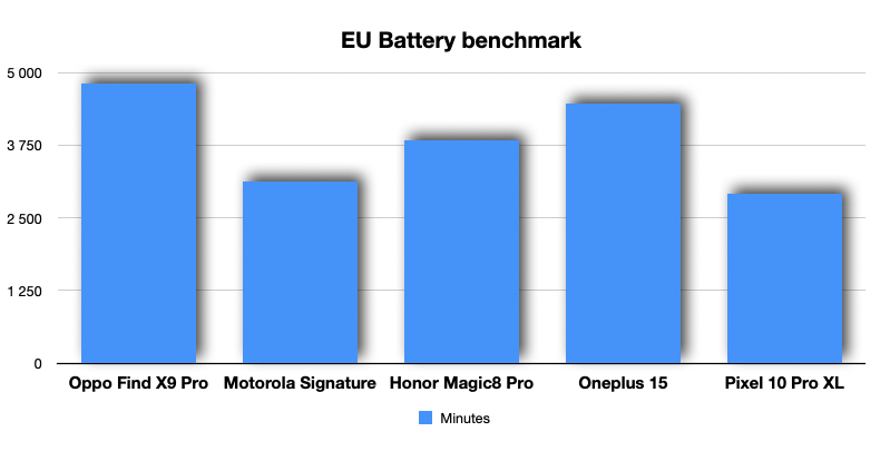 Insidan är likadan som X9 vad gäller systemkretsar, men X9 Pro har fått ett massivt 7 500 mAh kisel-kol-batteri. Det ger den en 16 procent längre batteritid än lillebror, enligt EU:s testkriterier, vilket till och med slår vår tidigare batterikung OnePlus 15. Eller dubbelt så lång batteritid som Samsung Galaxy S25 Edge, om man vill vara lite retsam. Den kan även laddas med 80 watt, men då måste man köpa deras specialladdare, för med en standardladdare fick vi medelmåttig laddprestanda.