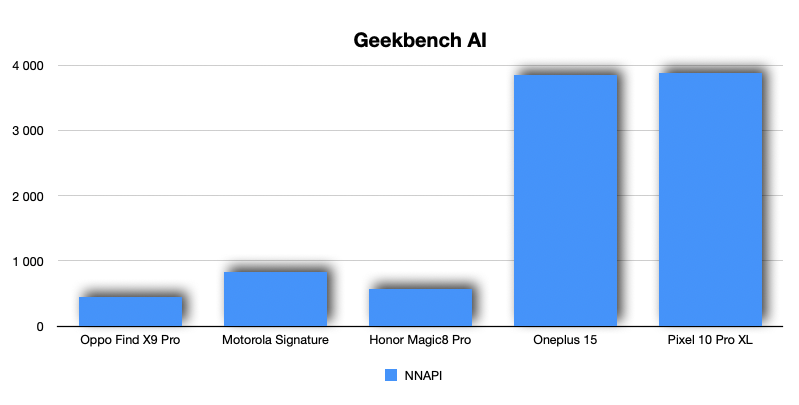 Därmed är den inte längre lika överlägsen i konkurrensen utan ligger ungefär där man kan förvänta sig. Men precis som med X9 är Mediatek-kretsens AI-prestanda under all kritik. Den är i klass med en budgetmobil eller en två år gammal mellanklassmobil.