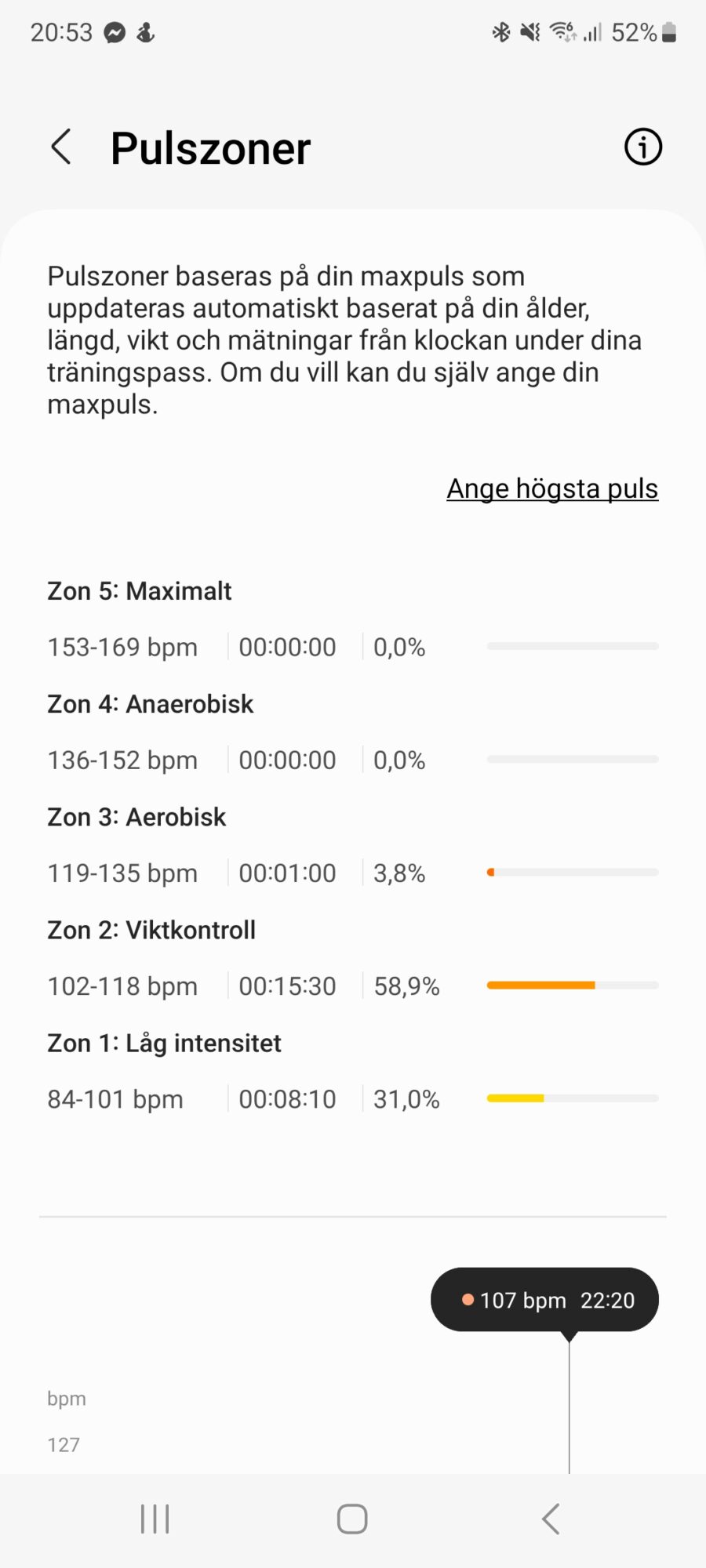 Att träna med Samsung Galaxy Watch 6 är väldigt okomplicerat. Jag har ungefär 90 olika träningsformer att välja mellan och jag kan även skapa ett eget pass om jag så önskar. Minnet är ju bra men kort och jag är tacksam över att klockan själv känner av, och startar, ett träningspass när jag själv glömt bort det.