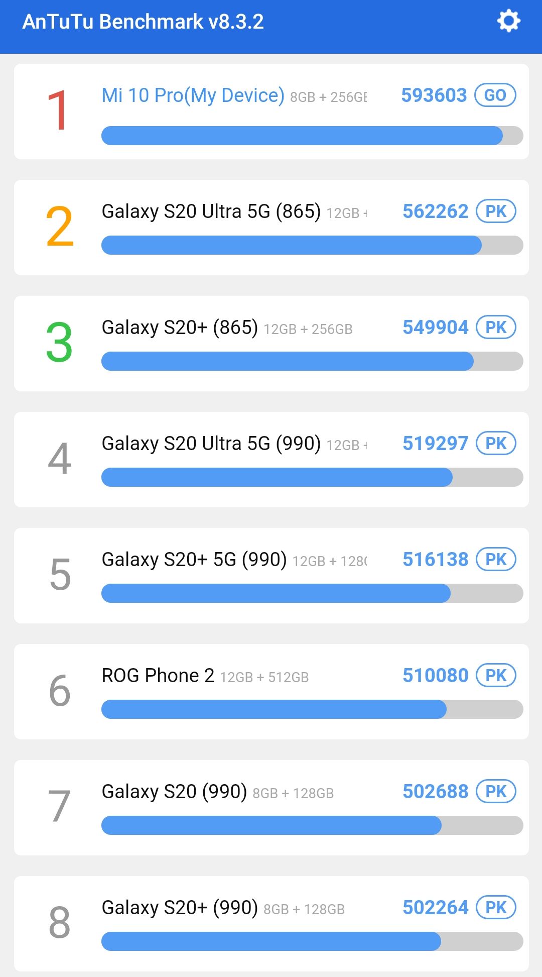 Med tanke på att Mi 10 Pro använder samma processor som OnePlus 8 Pro så är prestandaskillnaderna minimala. Den är cirka 10-15 procent snabbare än Samsung Galaxy S20 Ultra och runt 25 procent snabbare än Huawei P40 Pro. Ingen skillnad som avgör vilken man ska köpa. Däremot är Mi 10 Pro hela 350 procent snabbare på AI-funktioner, som bildigenkänning, än Huawei. Och den är faktiskt 40 procent snabbare än alla de andra på VR.