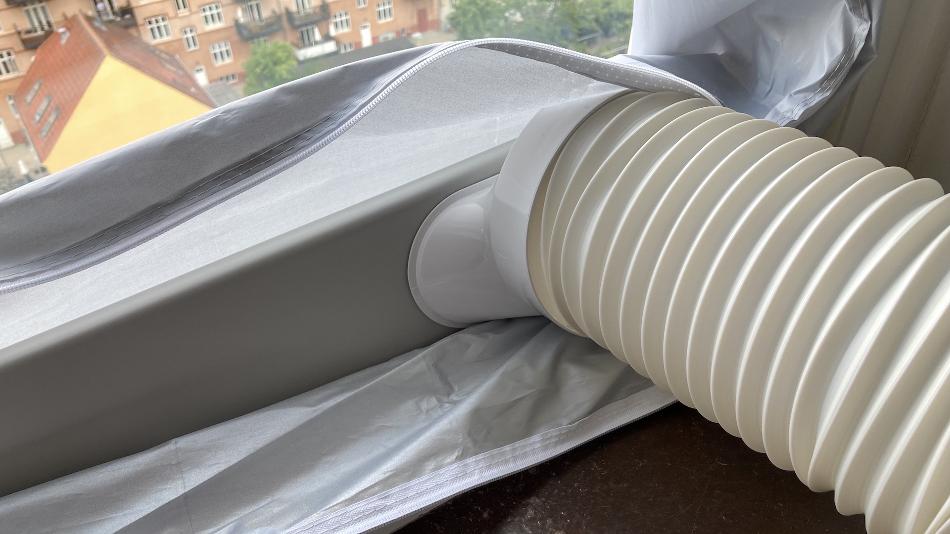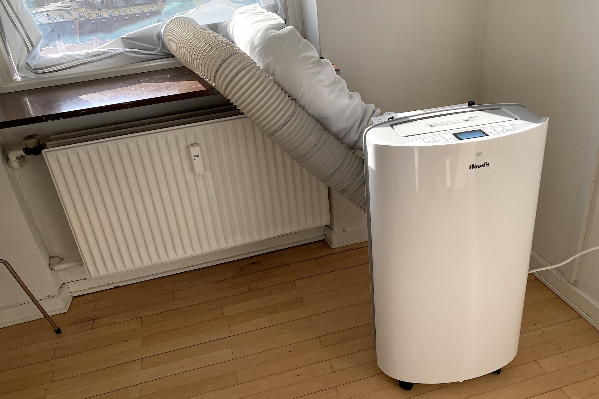 Vissa luftkonditioneringsapparater kräver utrymme och är inte alltid så mobila. Testmodellen från Wood’s behövde två slangar på grund av AirSwitch-funktionen. (Foto: Natasja Broström)