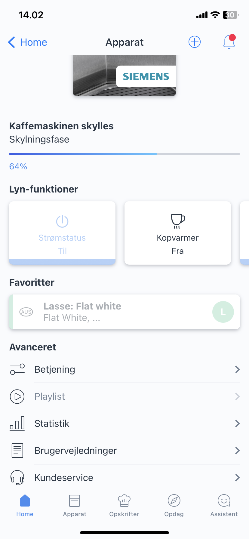 Appen har dock en stor nackdel. Man kan inte automatisera någonting alls. Man kan ställa in Home Connect så att den fungerar med Amazon Alexa och Google Home röststyrning, men i övrigt måste man alltid använda sin telefon när man vill ändra något. Man kan alltså inte förprogrammera maskinen och koppvärmaren så att de slås på 10 minuter innan man vaknar, vilket enligt min mening är viktigare än att kunna styra allt från telefonen. Tyvärr kan man inte heller skapa en genväg till Apple Hem eller motsvarande Android-appar.