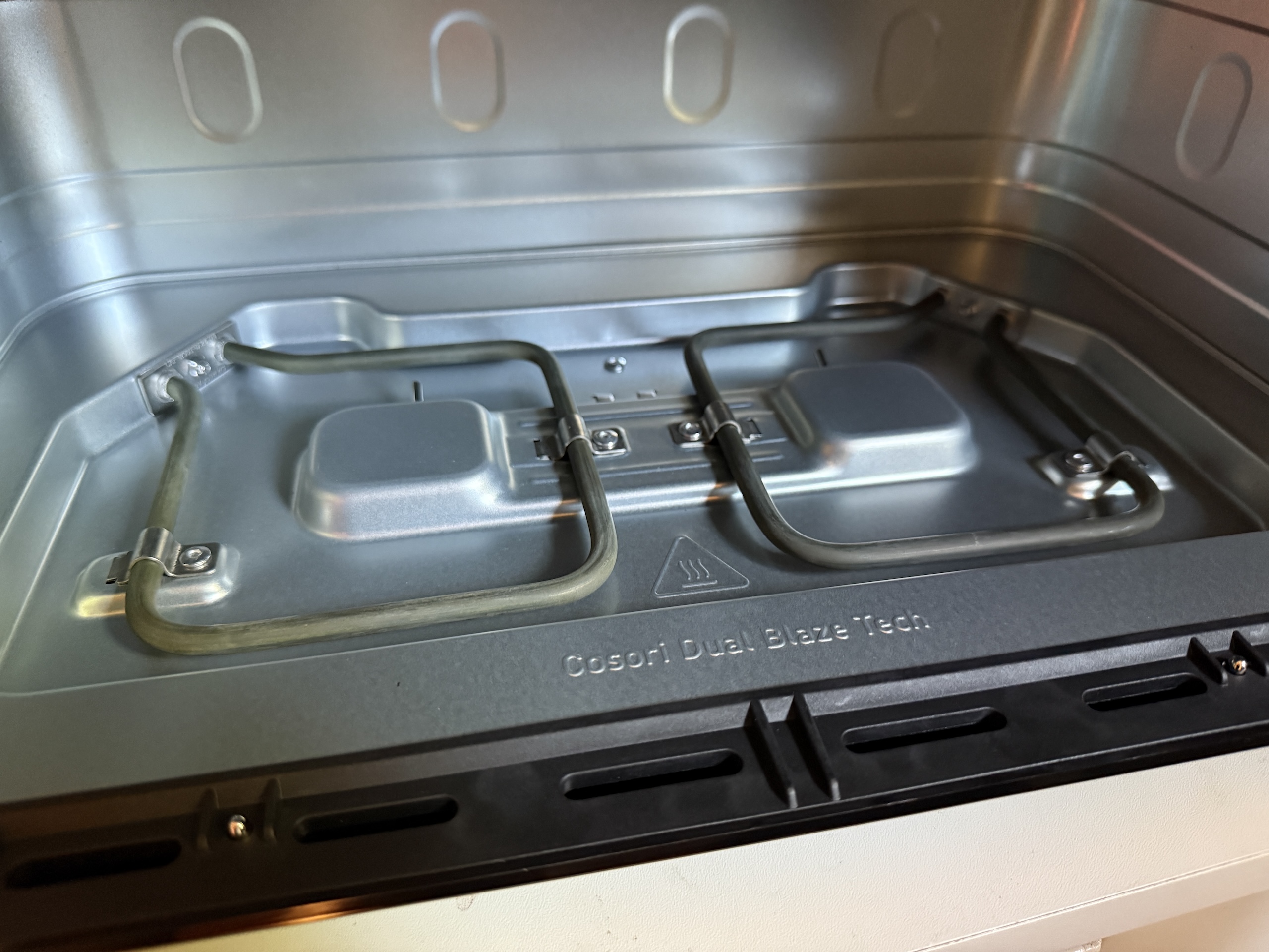 Twinfry i namnet är lätt att begripa, medan Dual Blaze innebär att den även har värmeelement i botten av apparaten. Det påstås ge en mer effektiv tillagning, men vi förstår inte riktigt hur, då de nedre elementen ju bara värmer botten av korgen. Det sägs att man ska rengöra elementen men inget om hur, fast en vanlig diskborste fungerade bra för oss. Både korgen och stekgallren uppges vara diskmaskinssäkra vilket vi uppskattar.