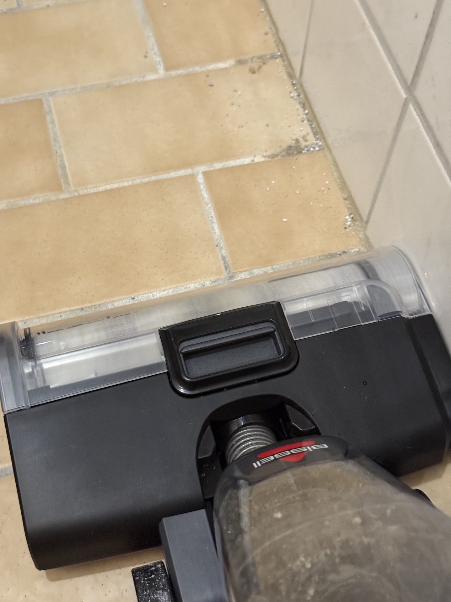Moppningsfunktionen är desto effektivare och vi känner för en gångs skull att det blir renare än att moppa för hand. För att verkligen utmana den lät vi ett äckligt spill torka in ordentligt. Visst krävdes det att vi fick komma tillbaka till fläcken senare när den hade blött upp sig, och nog fick vi aktivera turbofunktionen, men visst försvann den. Det hade inte funkat med en manuell mopp. Vi uppskattar också att moppen faktiskt kommer ändå in till kanten av lister.