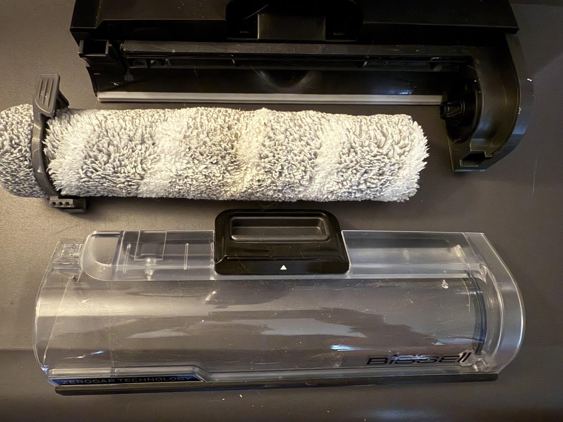 Damm och smutsvatten samlas i den stora behållaren längst ner. Med ett enkelt handgrepp lossar man den för att ta till diskhon för rengöring. Man börjar med att ta ur filterinsatsen som dels består av ett nät som fångar upp grövre damm och ett hepa-liknande dammfilter för det fina. Det ska sägas att dammfiltret snabbt sattes igen efter en dammsugningsrunda i ett hem med katter. Lyckligtvis är det bara att skaka av i sophinken innan man sköljer av det.