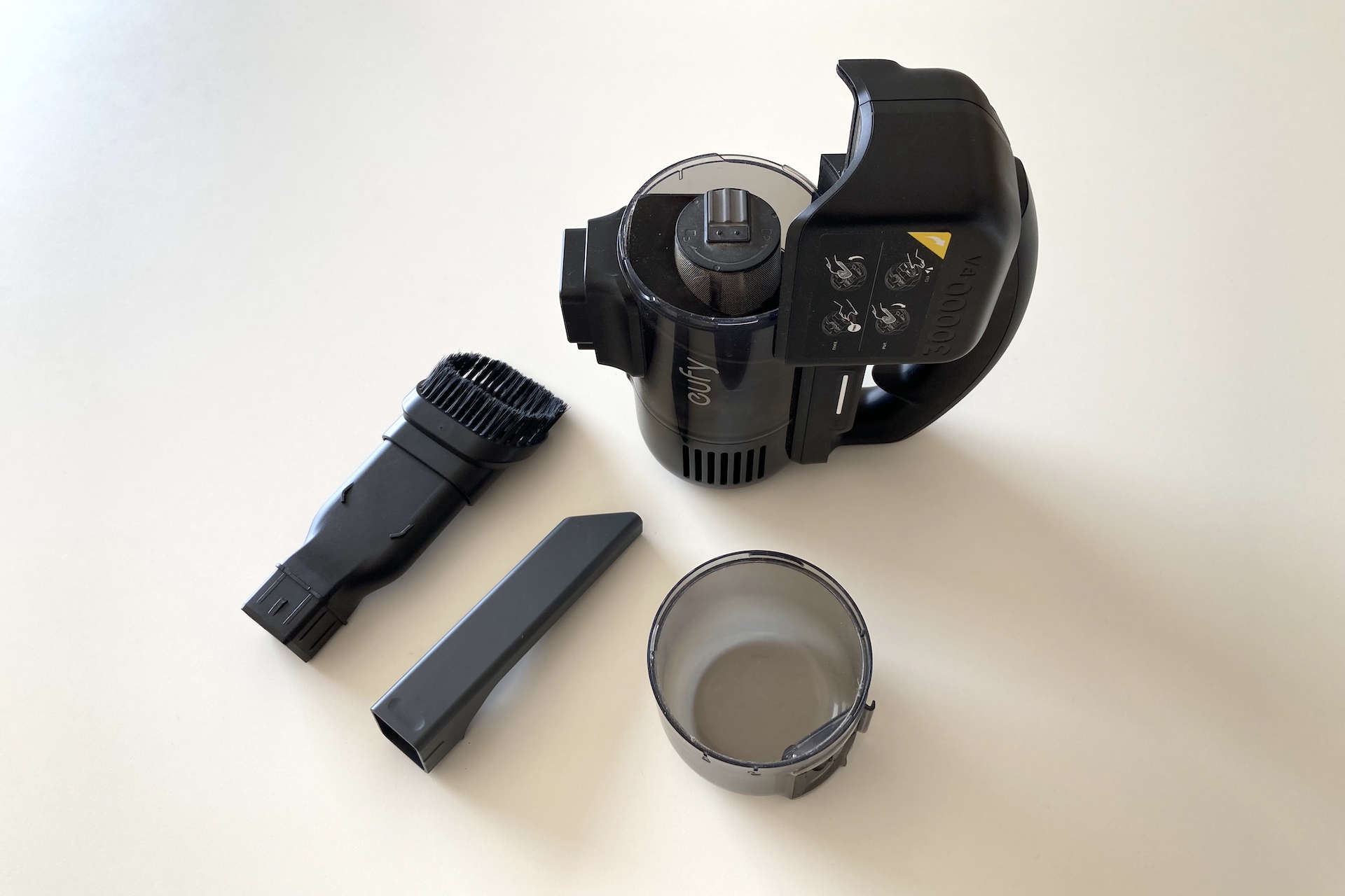 Det är lite krångligt att växla mellan de tre funktionerna (skaftdammsugare, robotdammsugare och handdammsugare). Delarna lossnar inte alltid så lätt från varandra och känns ovanligt billiga i kvaliteten för ett Eufy-produkt.