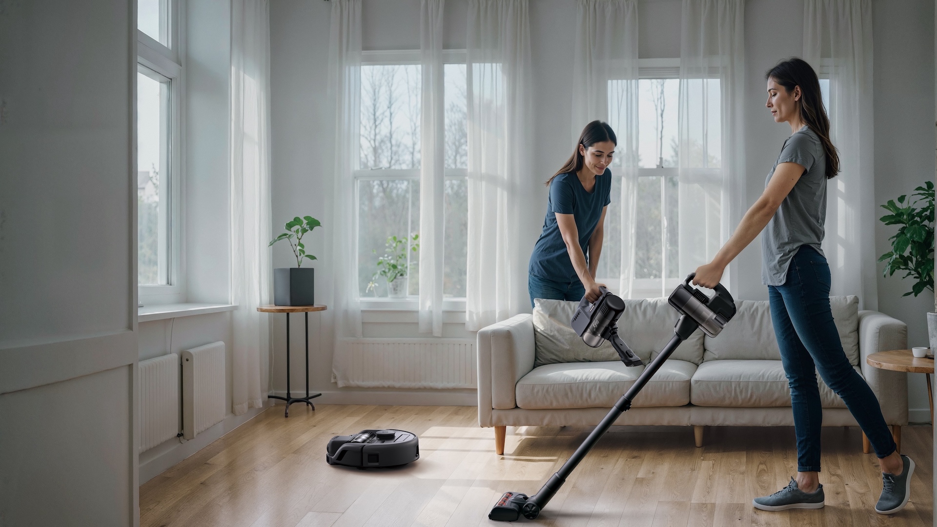 Om du lossar robotens del med motor och dammbehållare får du en handdammsugare som levererar imponerande 30 000 Pa. Delen kan monteras på en medföljande teleskopstång med dammsugarmunstycke, och då har du en skaftdammsugare.