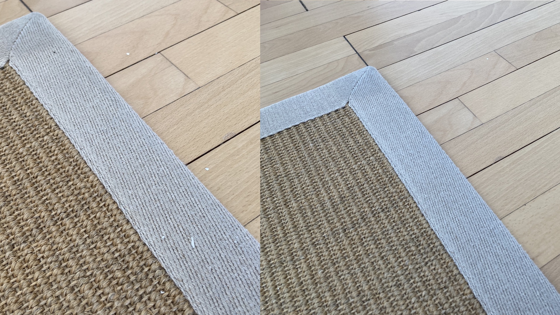Mitt sisalmatta innehöll däremot fortfarande synligt skräp, även om jag hade ställt in roboten på maximal effekt och låtit den köra två gånger. Det vill säga på tvären och sedan tvärs över vardagsrummet.