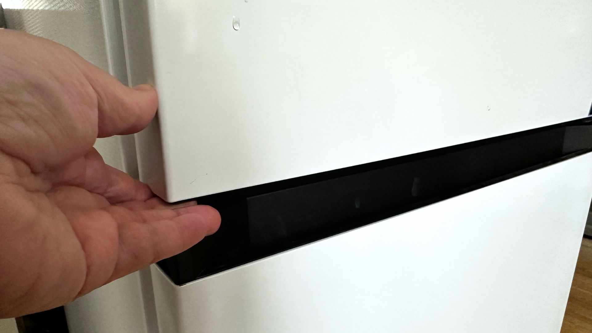 Hisense har valt en minimalistisk design. Möjligen löst inspirerad av Elon Musk. Precis som Tesla har Hisense slopat de konventionella handtagen på kylskåpet.