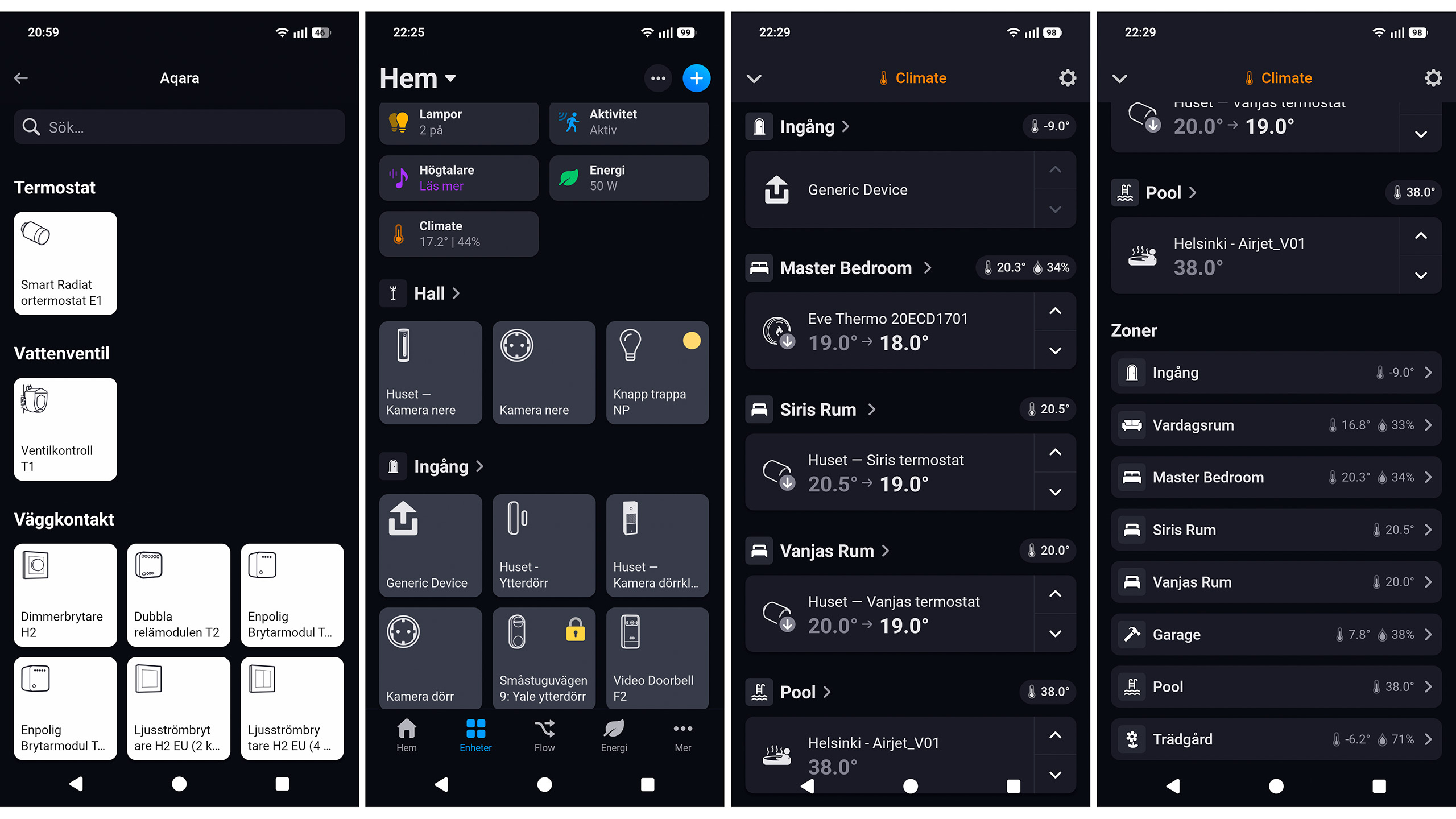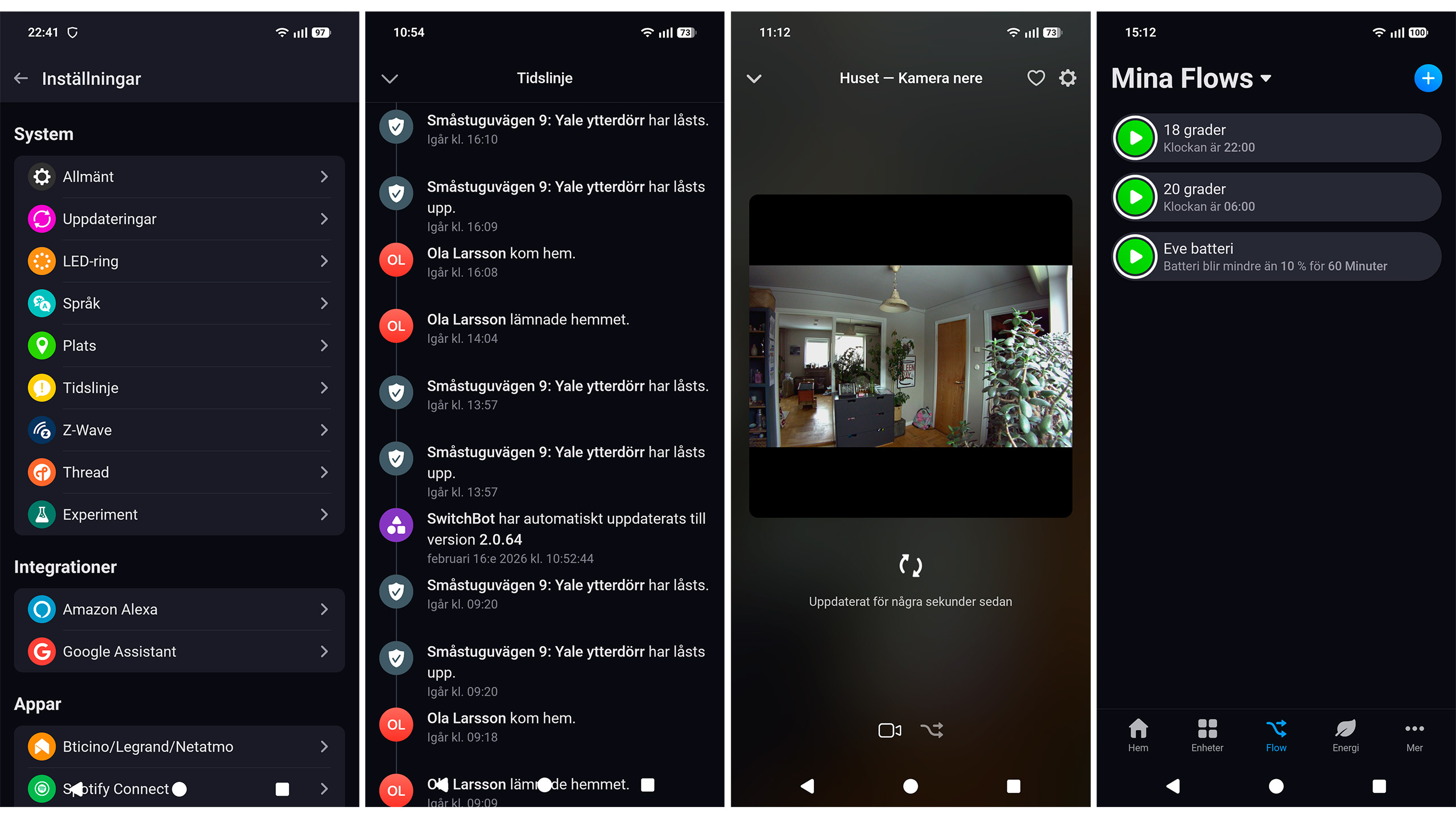 Bubbelpoolen på altanen (en Lay-Z/Bestway) har jag inte lyckats lägga till i Google Home, men det gick fint att lägga till den i Homey Pro. I Homey Pro kan man dessutom se stillbilder från övervakningskamerorna i realtid, men inte video. I Google Home ser jag ingenting från dem. Homey har precis i dagarna meddelat att de breddar stödet för live-video från kameror direkt i appen. Uppdateringen rullas ut nu och kräver Homey Mobile App v9.7.1 eller senare. Den svenska versionen av appen är 9.6.7 – vilket är anledningen att det inte fungerar ännu.