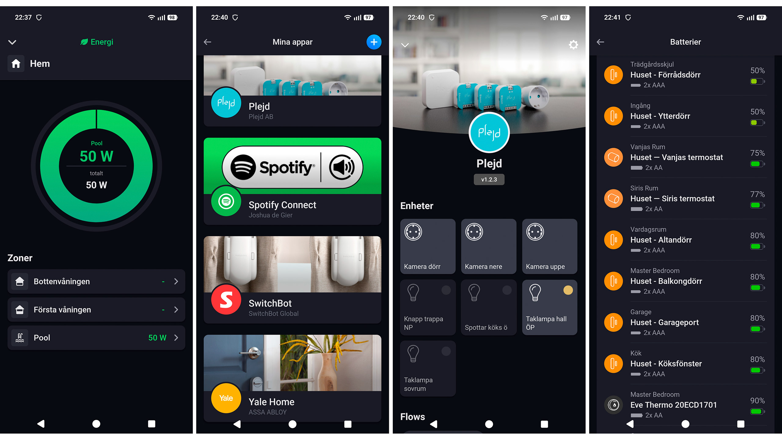 Efter att alla produkter lagts till fungerar Homey Pro ungefär på samma sätt som Google Home (som jag vanligtvis använder) men det fungerar mycket bättre. Det finns fler parametrar att hantera på produkterna och man får en mycket innehållsrik överblick över en mängd saker i de olika menyerna, som till exempel temperaturer, energiförbrukning (man kan manuellt ställa in hur mycket varje produkt förbrukar vid användning samt i stand-by – och man kan köpa till energimätare), batteristatus i alla produkter med mera.
