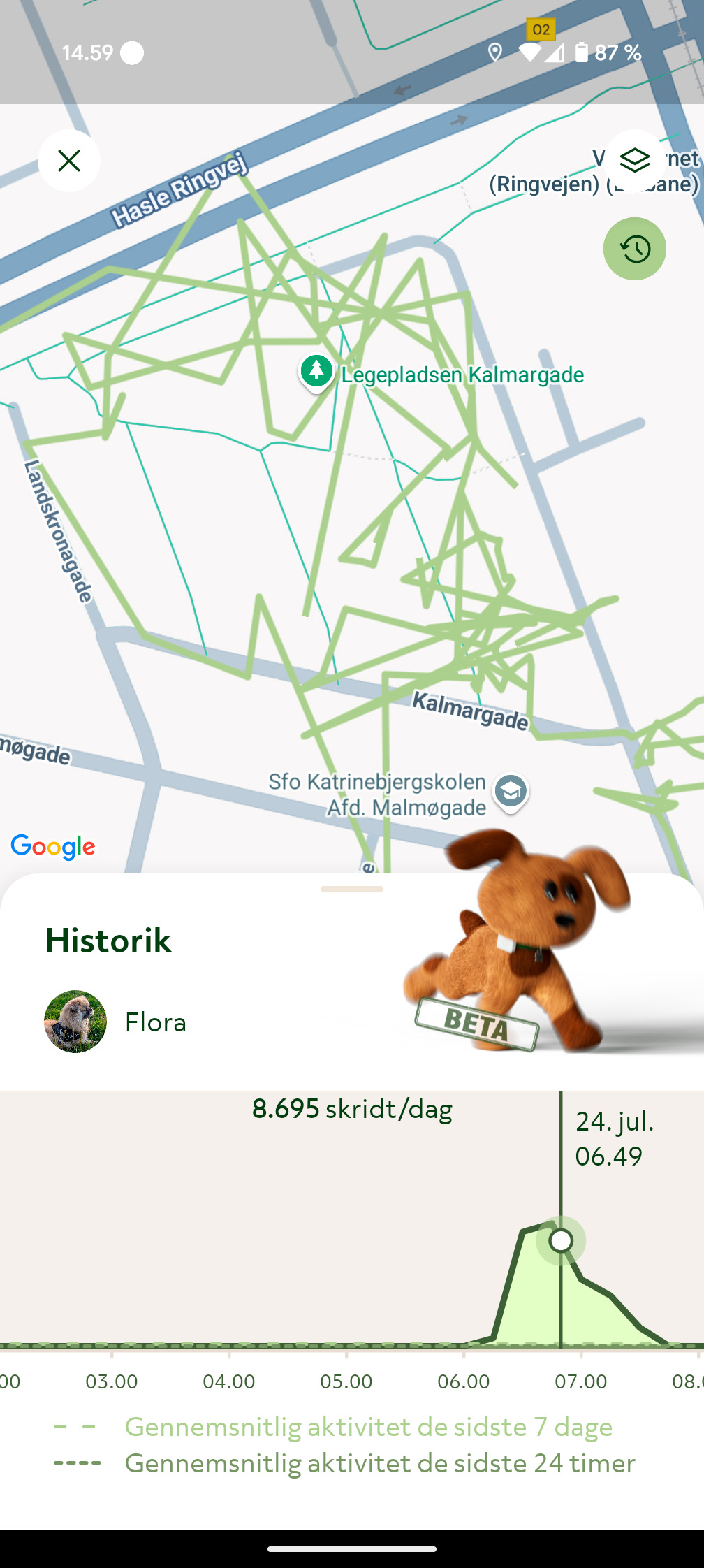 Förutom att spåra hundens position fungerar Lildog 2 som en stegräknare, så att man kan hålla koll på om dagens motion har varit tillräcklig. Och efter morgonpromenaden visar appen en karta över rutten – en trevlig detalj om man vill återuppleva promenaden eller bara se hur många nya lyktstolpar som har inspekterat.
