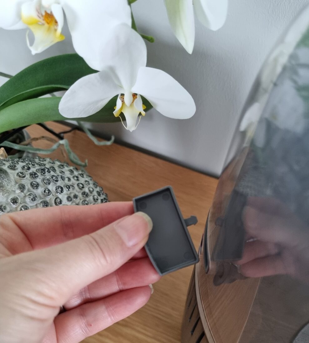 För att fylla på vatten bär jag antingen i väg hela vattentanken till närmaste vattenkran, alternativt fyller jag på genom den lilla luckan på ena sidan av produkten. Väldigt smidigt faktiskt.