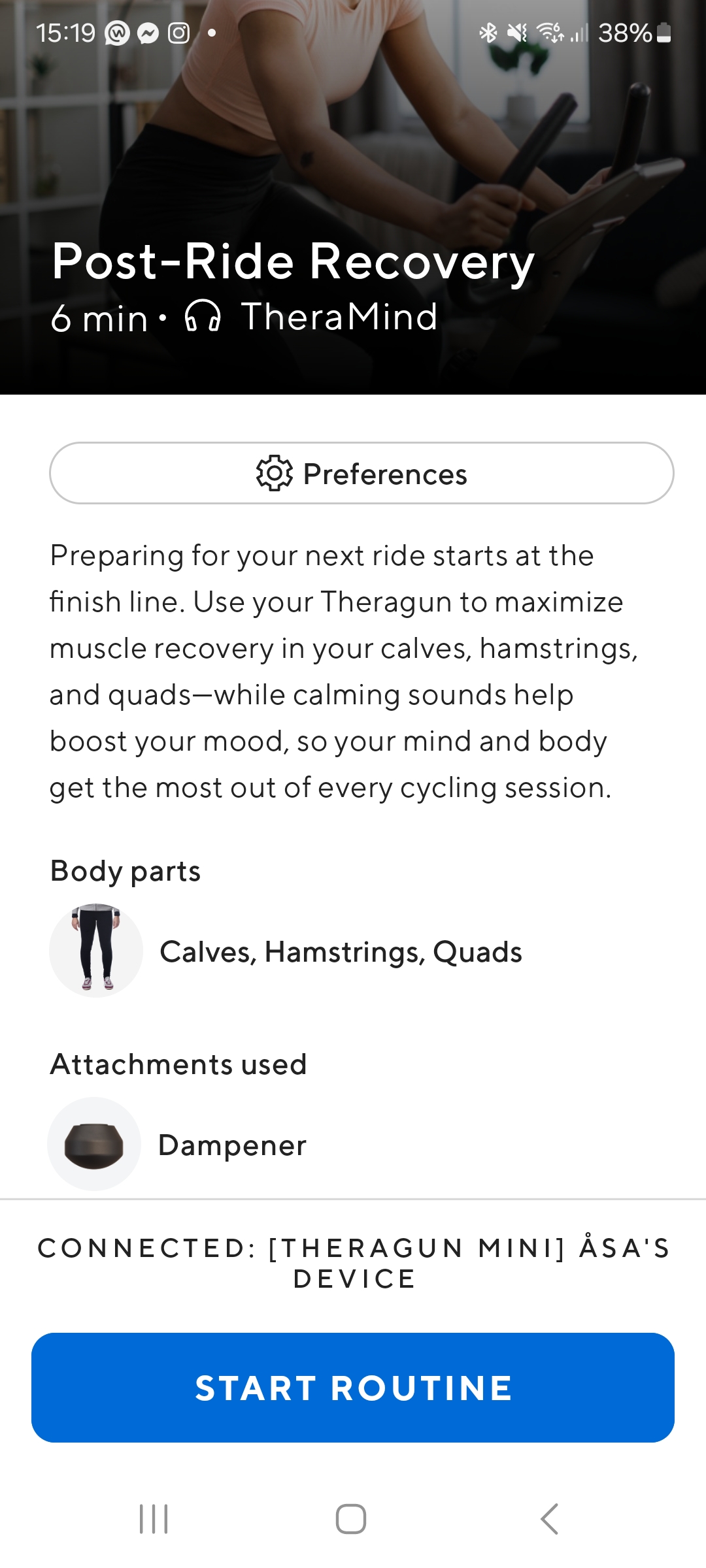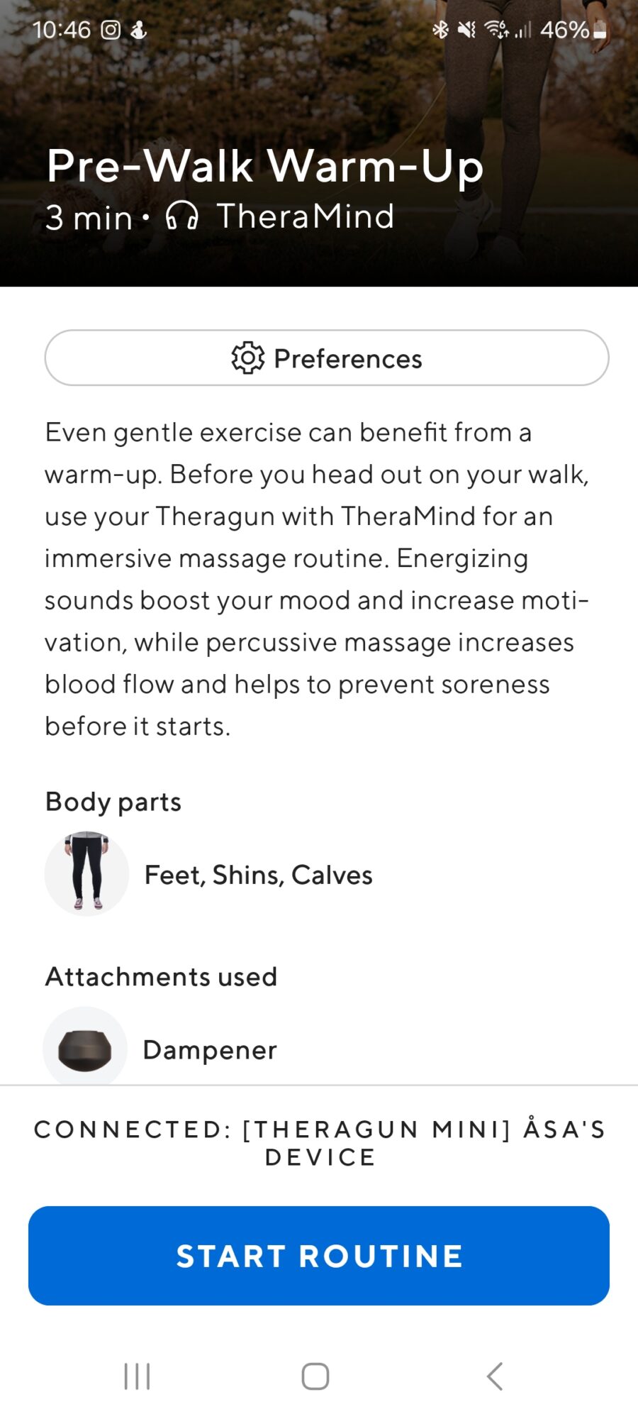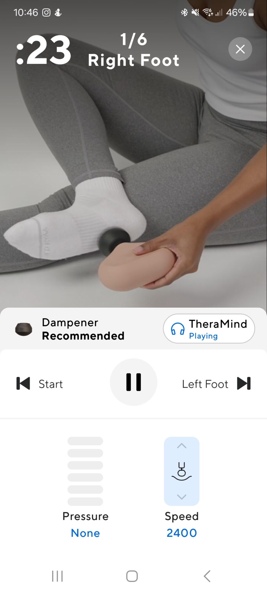 Jag uppskattar verkligen Therabody-appen. Här finns skräddarsydda program som guidar mig hur, och var, jag bör massera för att till exempel värma upp min kropp inför en viss typ av träning. Eller hur jag ska göra för att hjälpa mina muskler att återhämta sig efter ett spinpass. Det framgår klart och tydligt vilket massagehuvud som gäller. Intensiteten regleras automatiskt och det visas även en film för att jag enklare ska kunna hänga med. Hur pedagogiskt som helst!