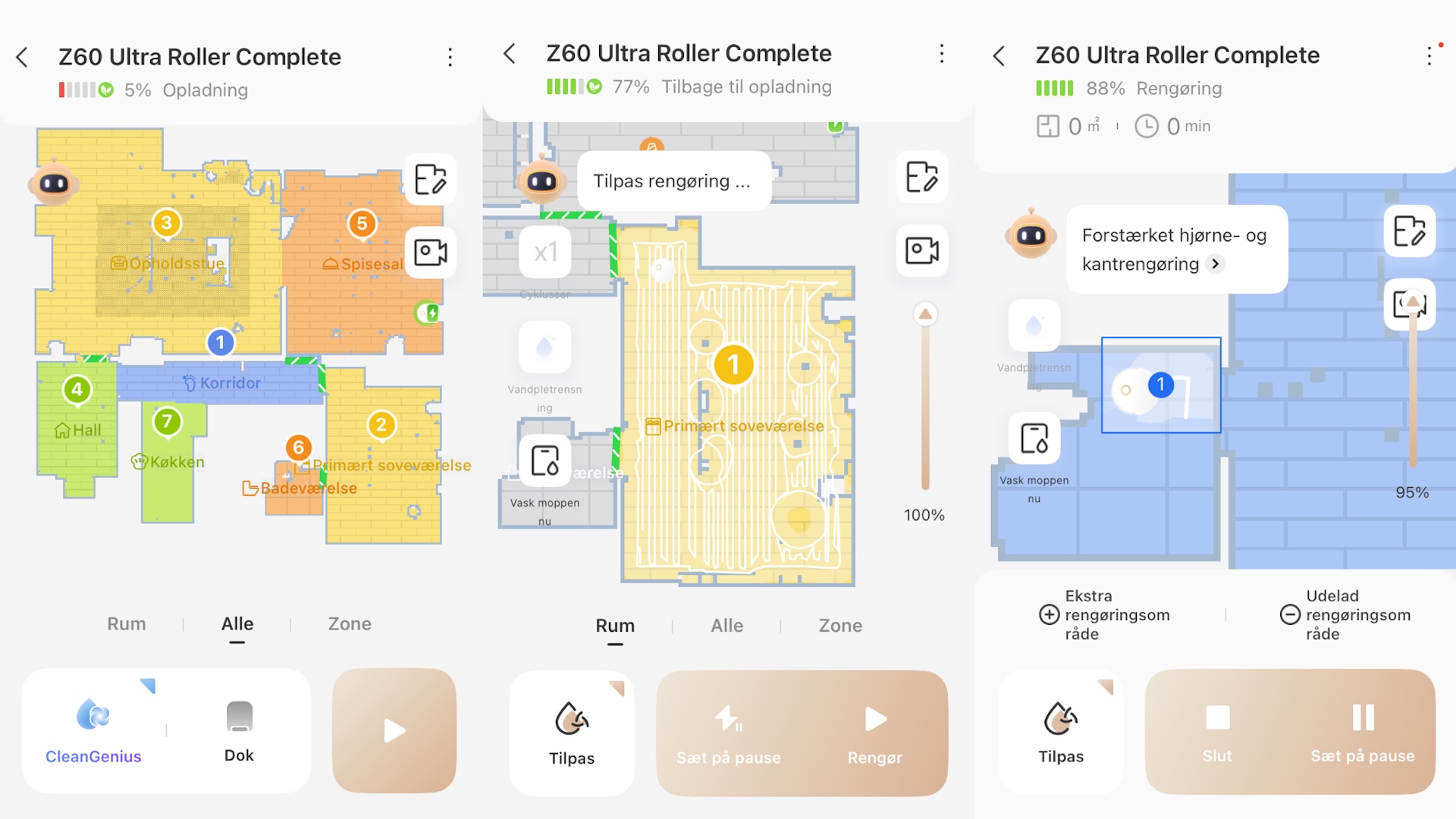 En perfekt kartläggning är inte mycket värd om roboten sedan vägrar att köra runt i hela bostaden. Trots enstaka små ”utflykter” där roboten tar onödiga omvägar, fungerar Z60 Ultra Roller Complete generellt sett bra.