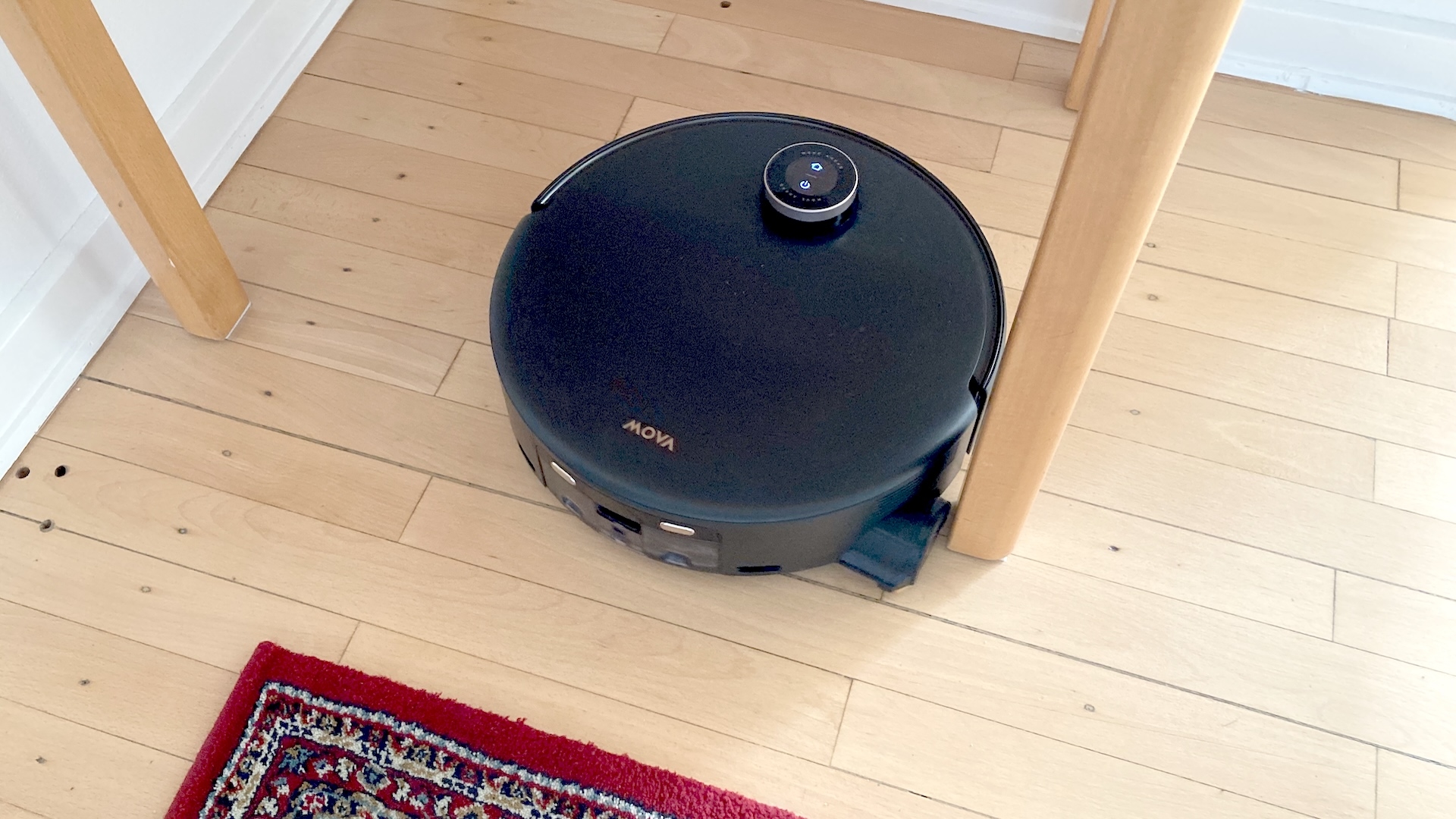 Med sina två ”ögon” (Binocular AI) känner roboten igen över 200 olika typer av föremål. Under kartläggningen och städningen smög Mova Z60 Ultra Roller Complete sig friskt runt mellan möbelben, in under soffor och över trösklar.